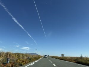 空気が澄んでてヒコーキ雲が進む方向へ伸びていく!