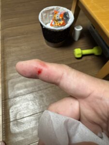 こっちも早く寝たいから追い掛け回して捕まえようとしたら容赦なく噛みつきやがった!