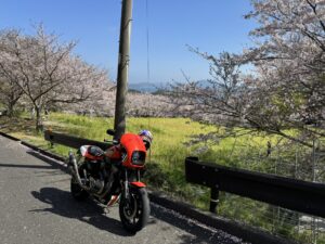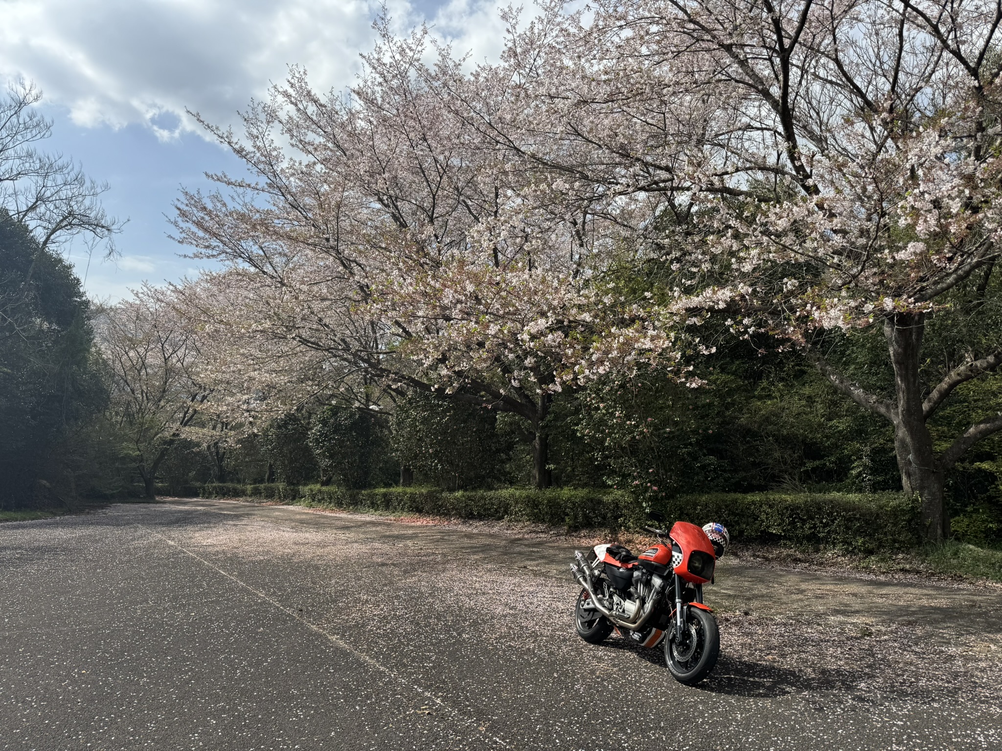 そして本日はバイクで再び訪れてみた。もう少し散り始めてる。金曜土曜で雨が降ったからね。