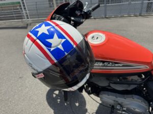 同じハーレーでもこれは全く別の乗り物ですよ。左足クラッチと左手でシフトする訳だから信号とかでクラッチ切って停車するときは右足で支えるしかない。