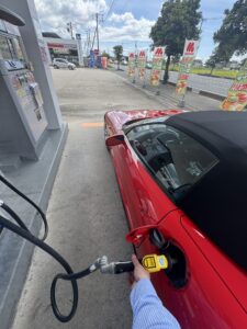 ハイオク満タン。気温は30℃位。まだオープンにして走るにはちと暑いな。