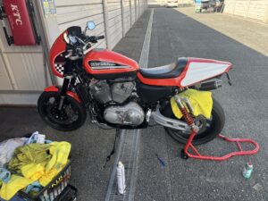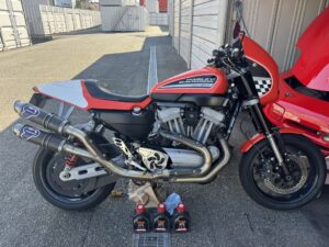 ドライサンプなんで、この前変えたのはミッションオイルです。国産車は一緒になってるけど、ハーレーは分かれてるんですよ。