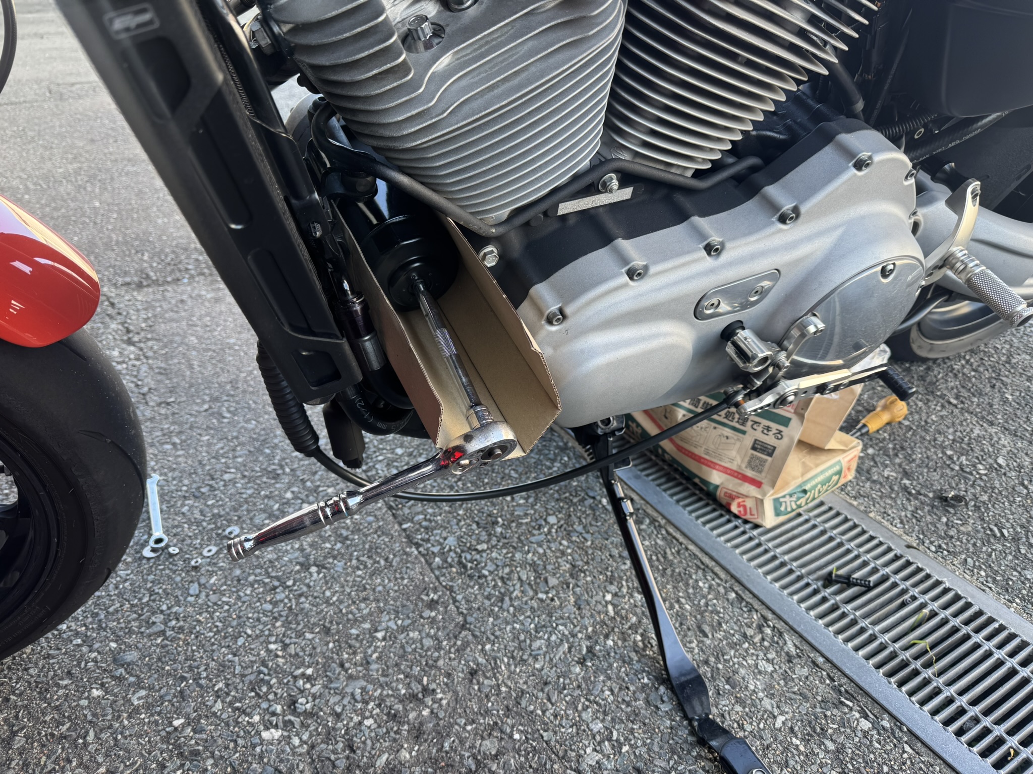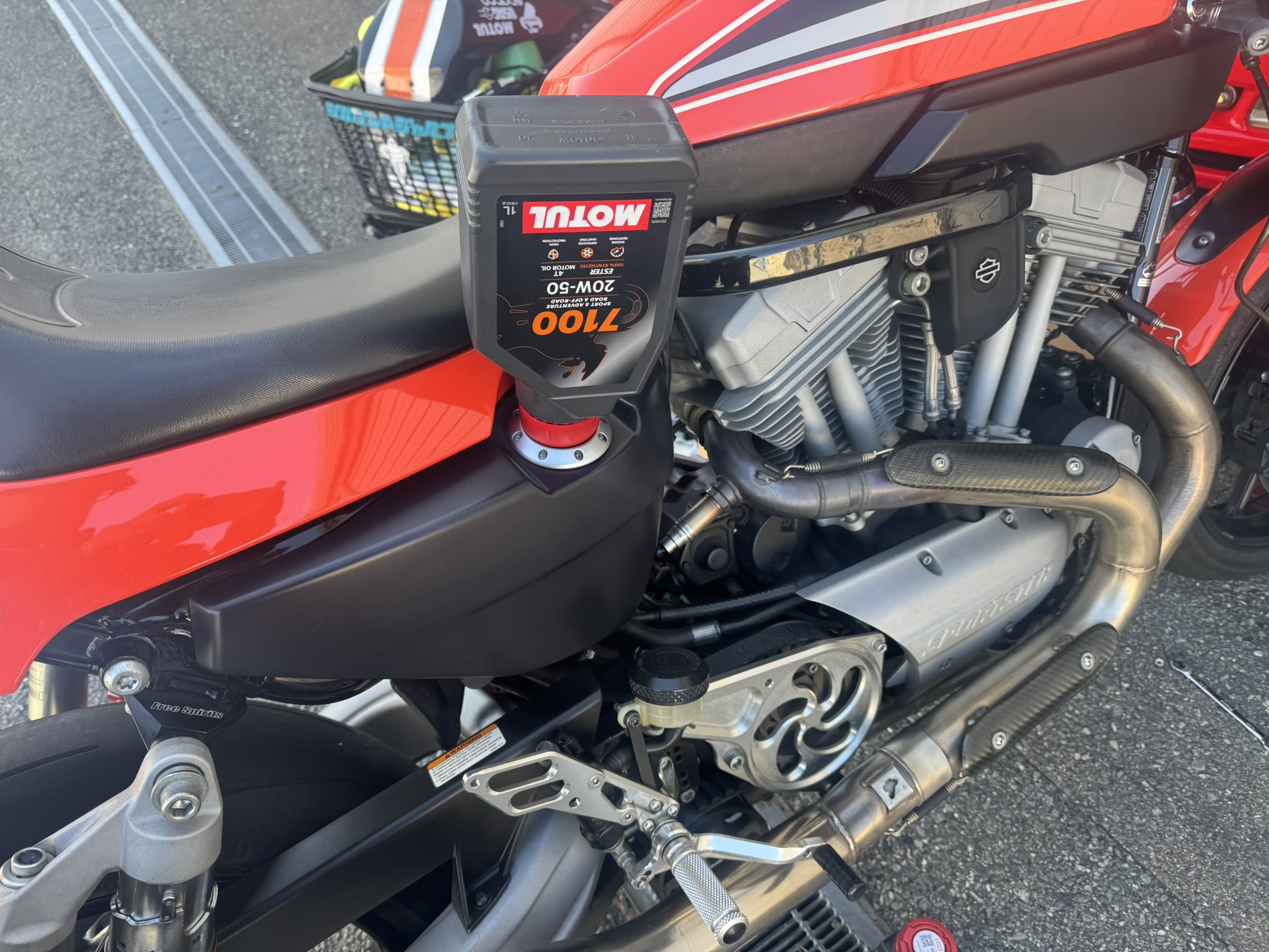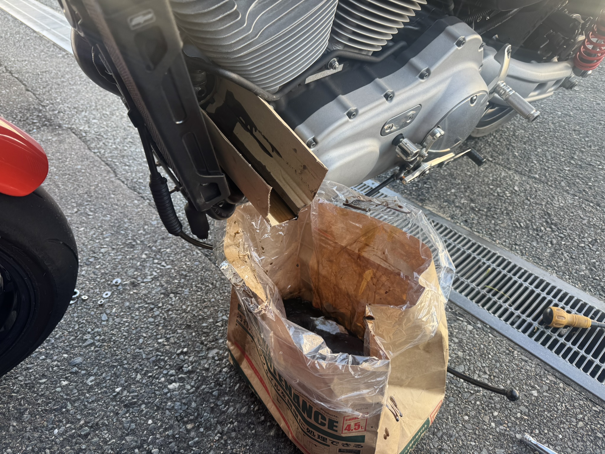 ドライサンプなんで、この前変えたのはミッションオイルです。国産車は一緒になってるけど、ハーレーは分かれてるんですよ。