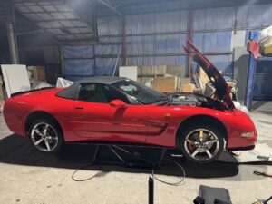 クイックジャッキが久しぶりに活躍。1分で上げれるから2柱リフトよりも速いし楽です。