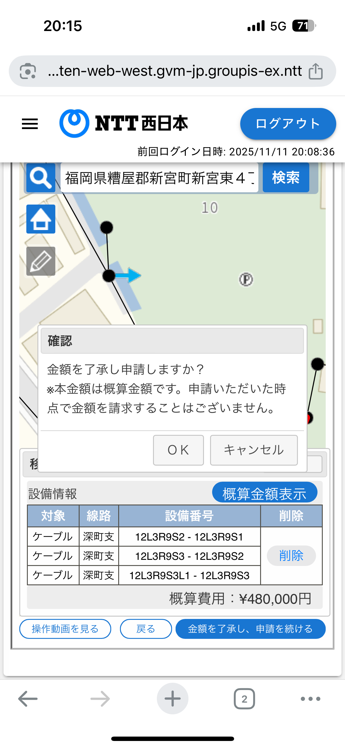 現場の上空にNTTの電線があるんで、建物を建てる時に邪魔になるから