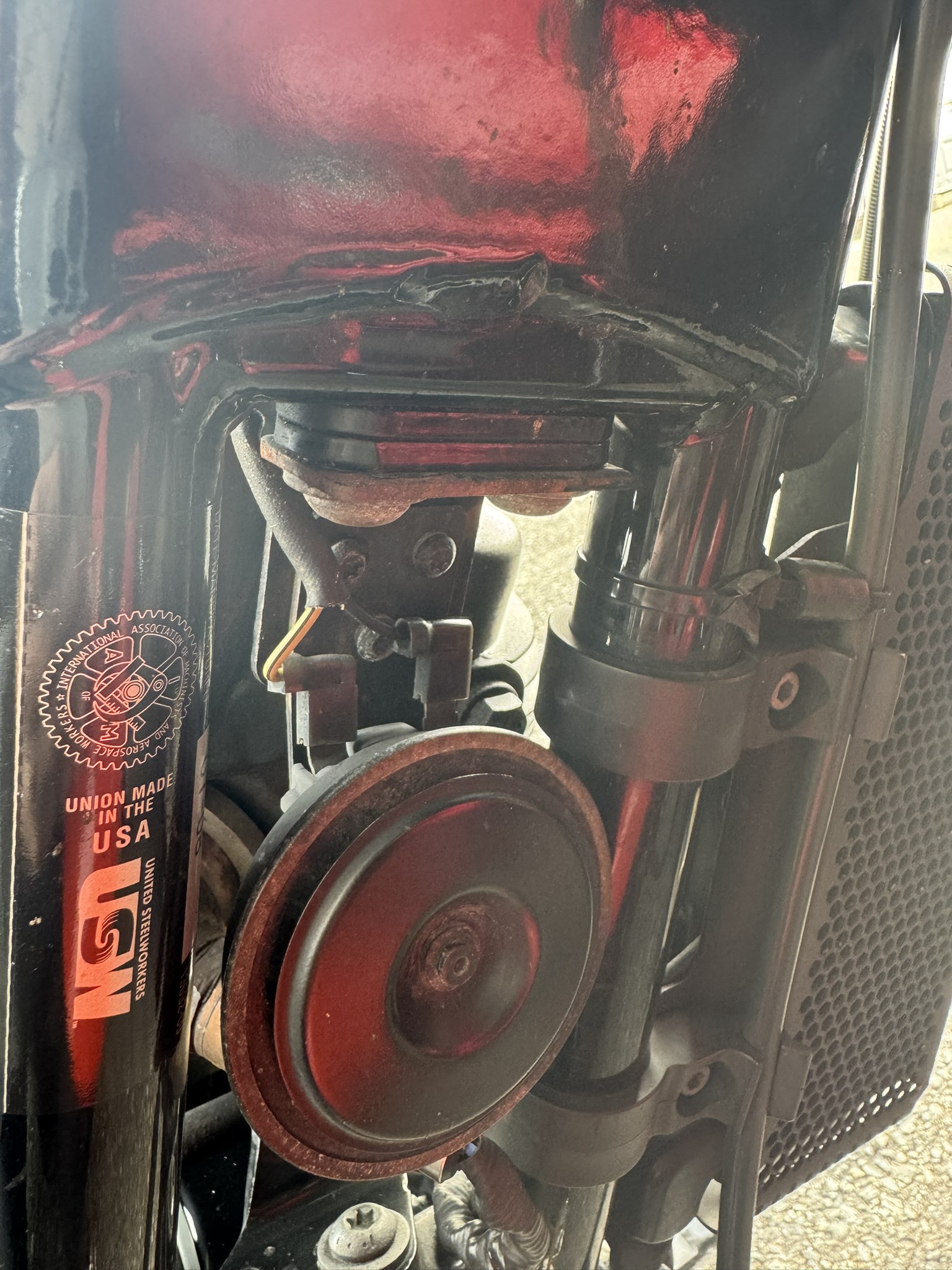 ついでにハーレーのホーンが汚かったのでブラスト打って塗った。
