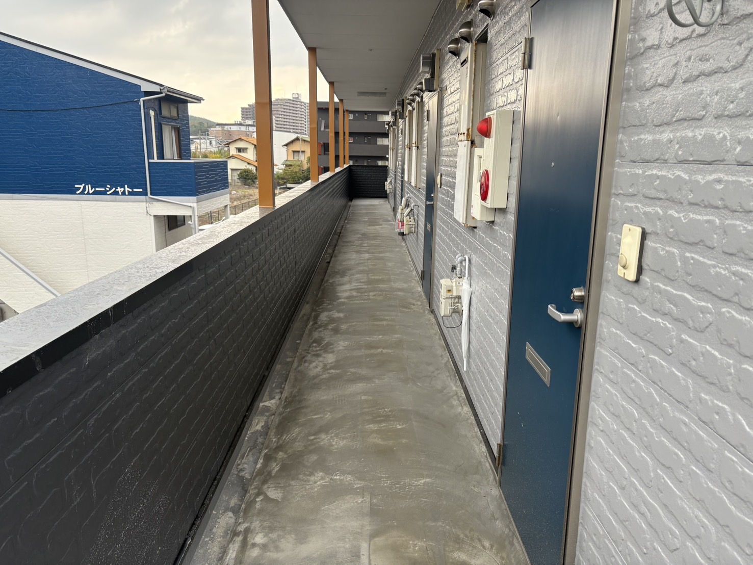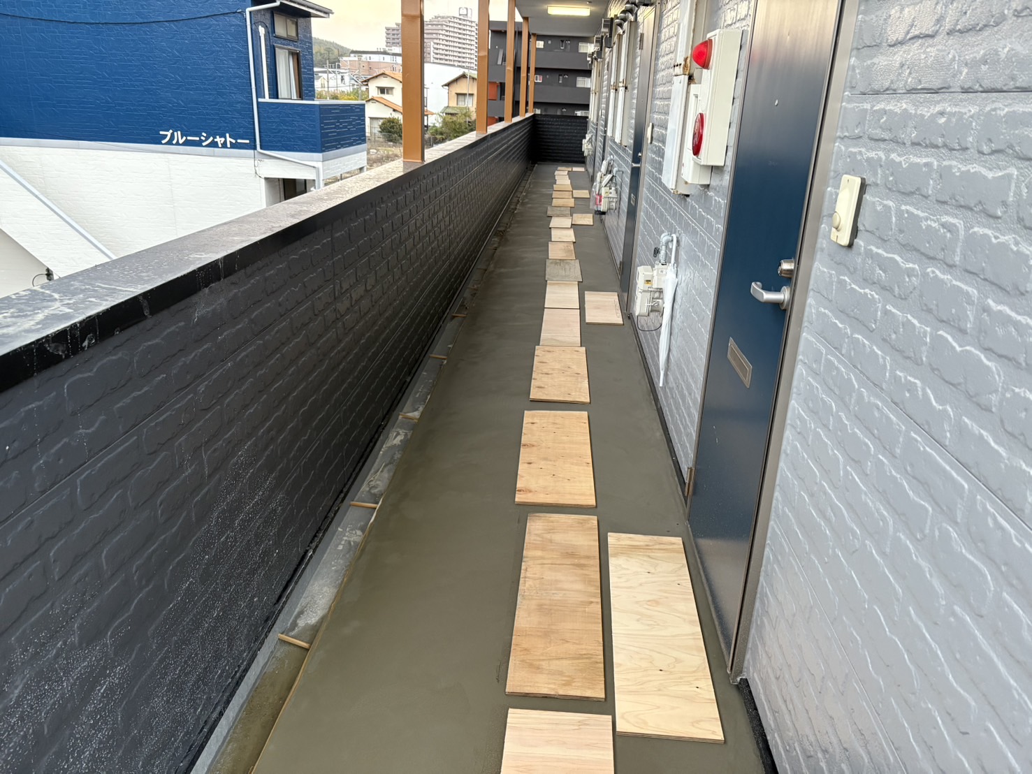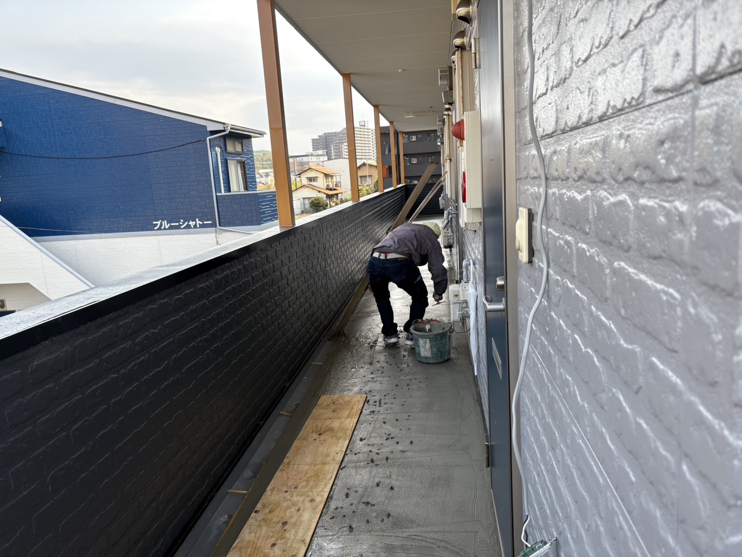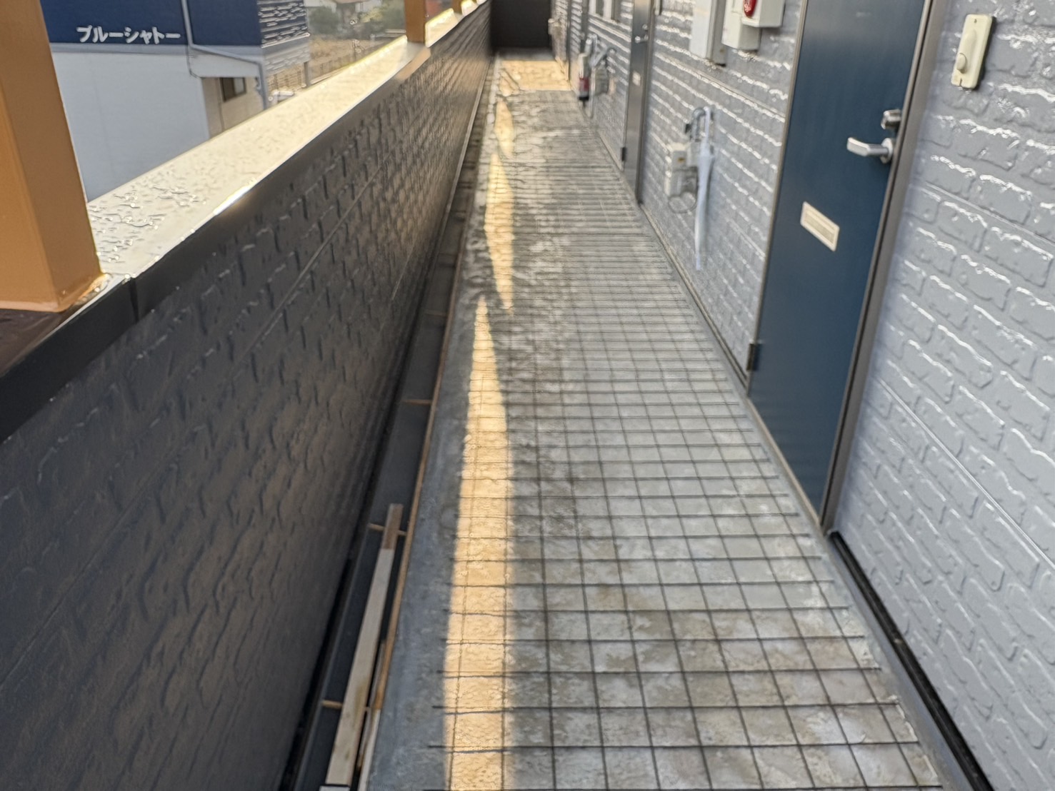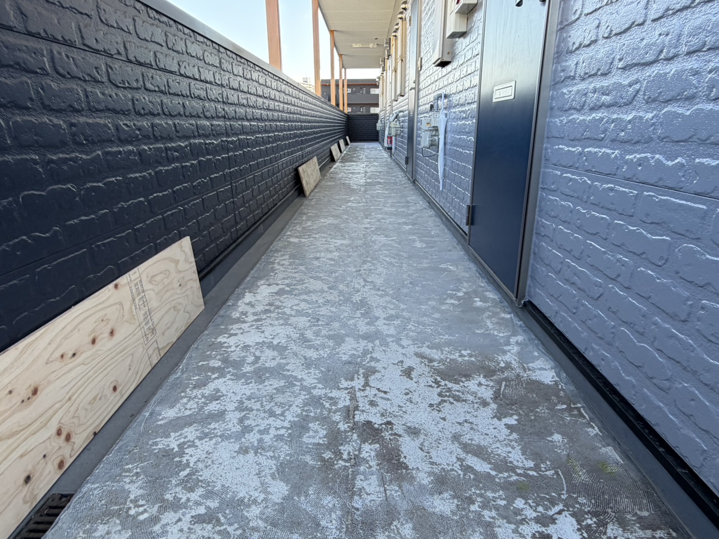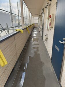 塗装工事してたら廊下に水が溜まると入居者からクレームが出てたので