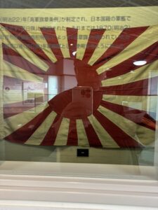 この前、佐世保の海軍資料館で見てきた軍艦旗(旭日旗)