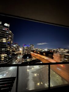 1年前にカナダに渡った時は窓のない地下室だったのに、都心部の16階に引っ越したらしい。