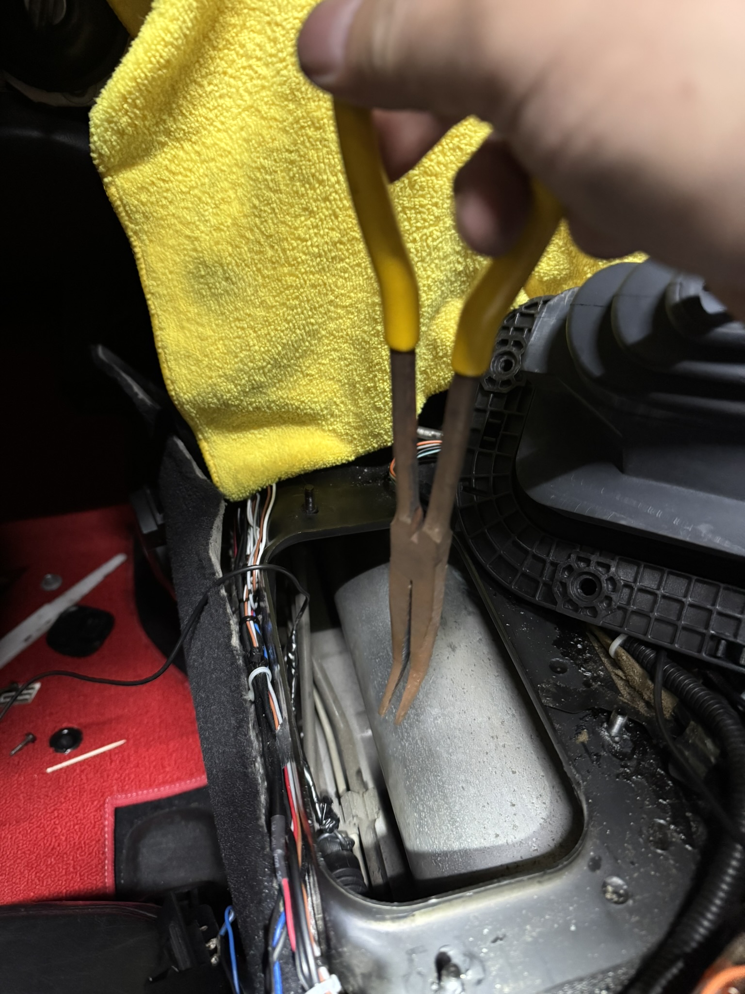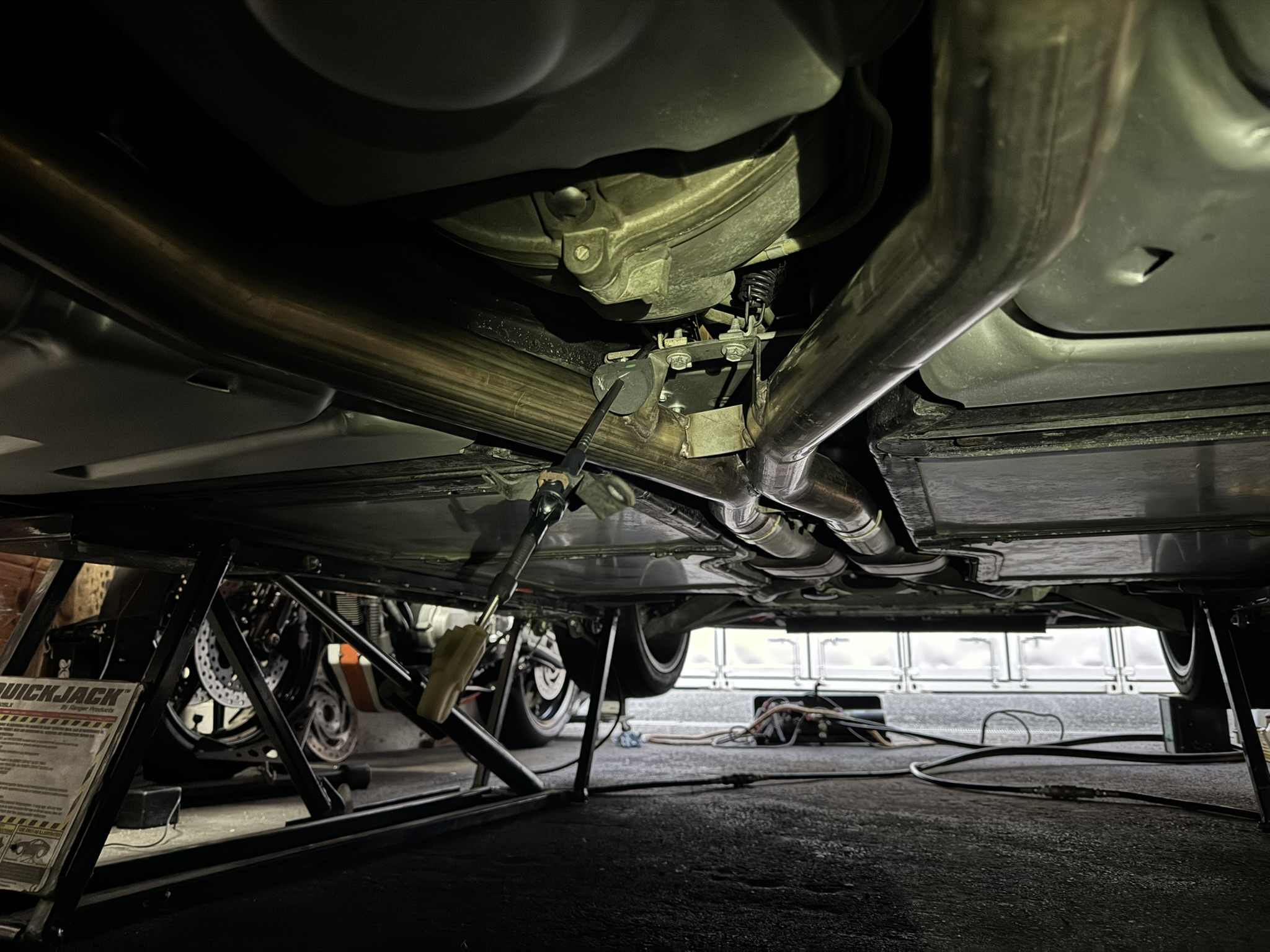 コルベットC5 シフトワイヤー交換でググるとマフラーを外して、トンネルプレートの大量のボルトを外しシフトワイヤーにアクセスするって書いてあるけど、