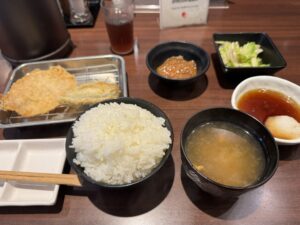 たかおです。ごはん大盛にしてもらって、この浅漬けと明太子はおかわり自由。