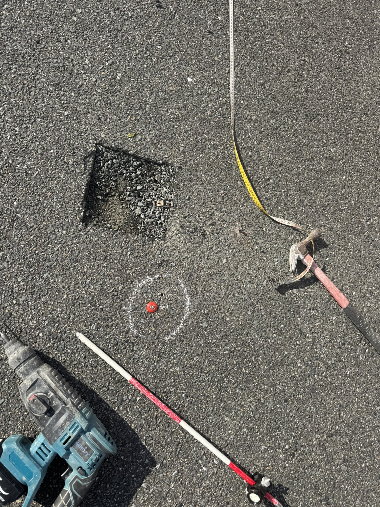 アスファルトをカッター入れて剥がすので墨だししてもらった。