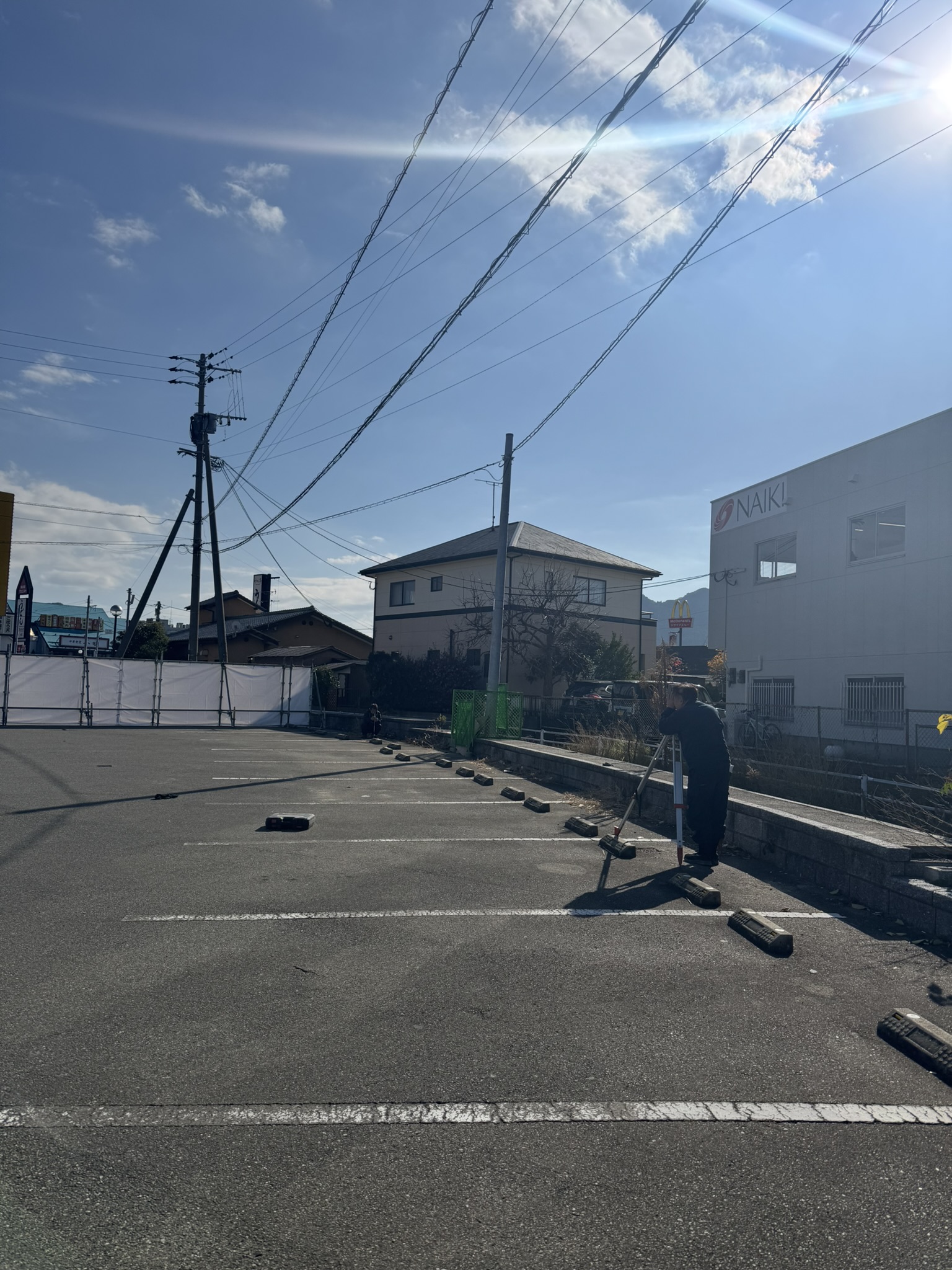 建物の四隅がどこに来るのかトランシットで測ってもらった。