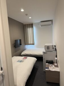 夕食も済ませて、コンビニで酒とおつまみ買ってホテルへ戻る。