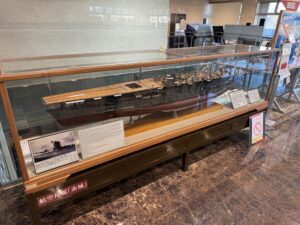 ここにも赤城の模型が置いてある。この反対側には下向きに煙突がついてるんだよね。昔の船は石炭で動いてたから。