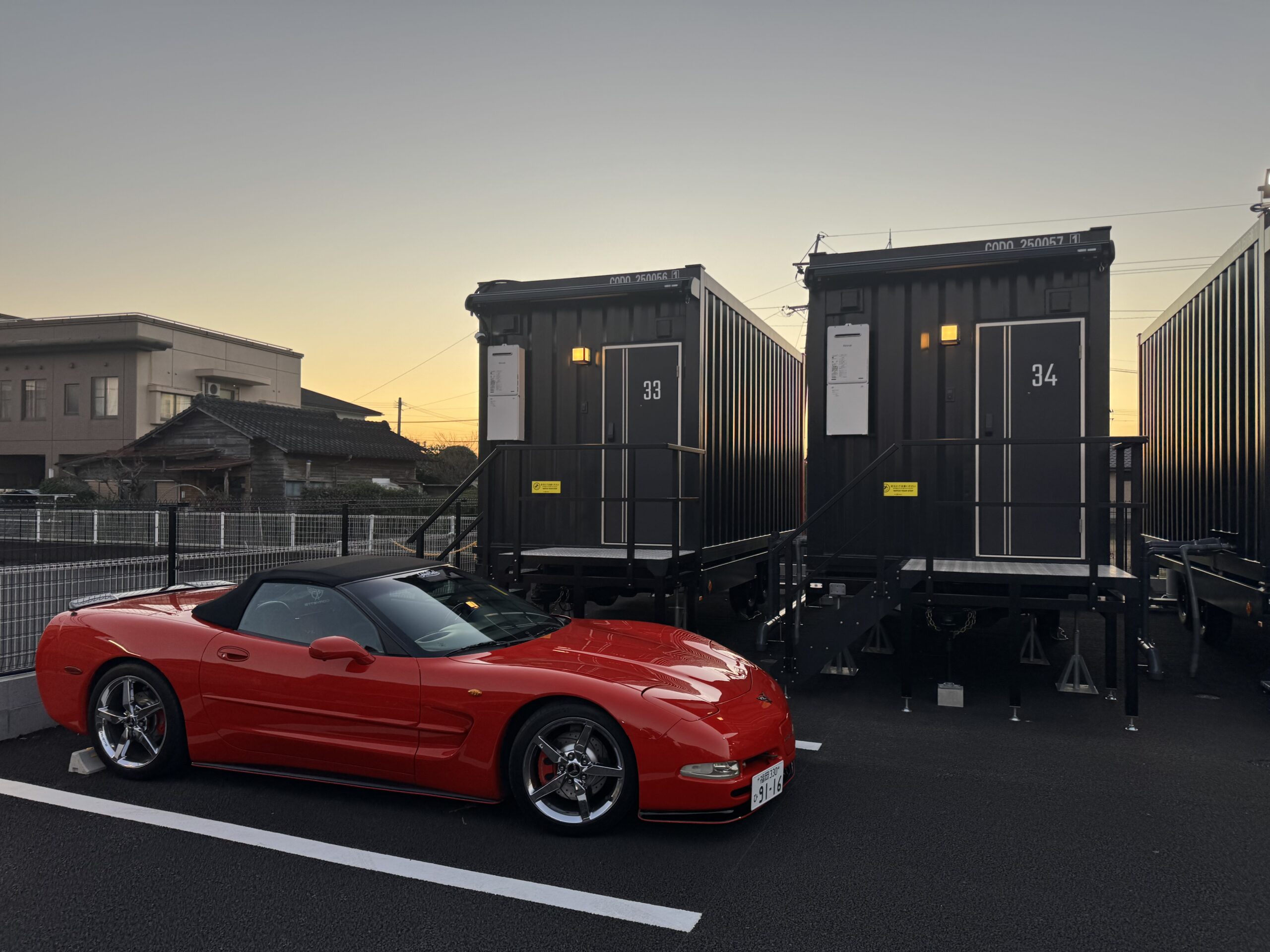 まだ早朝で誰も居ないからコルベット並べてコラボさせた。