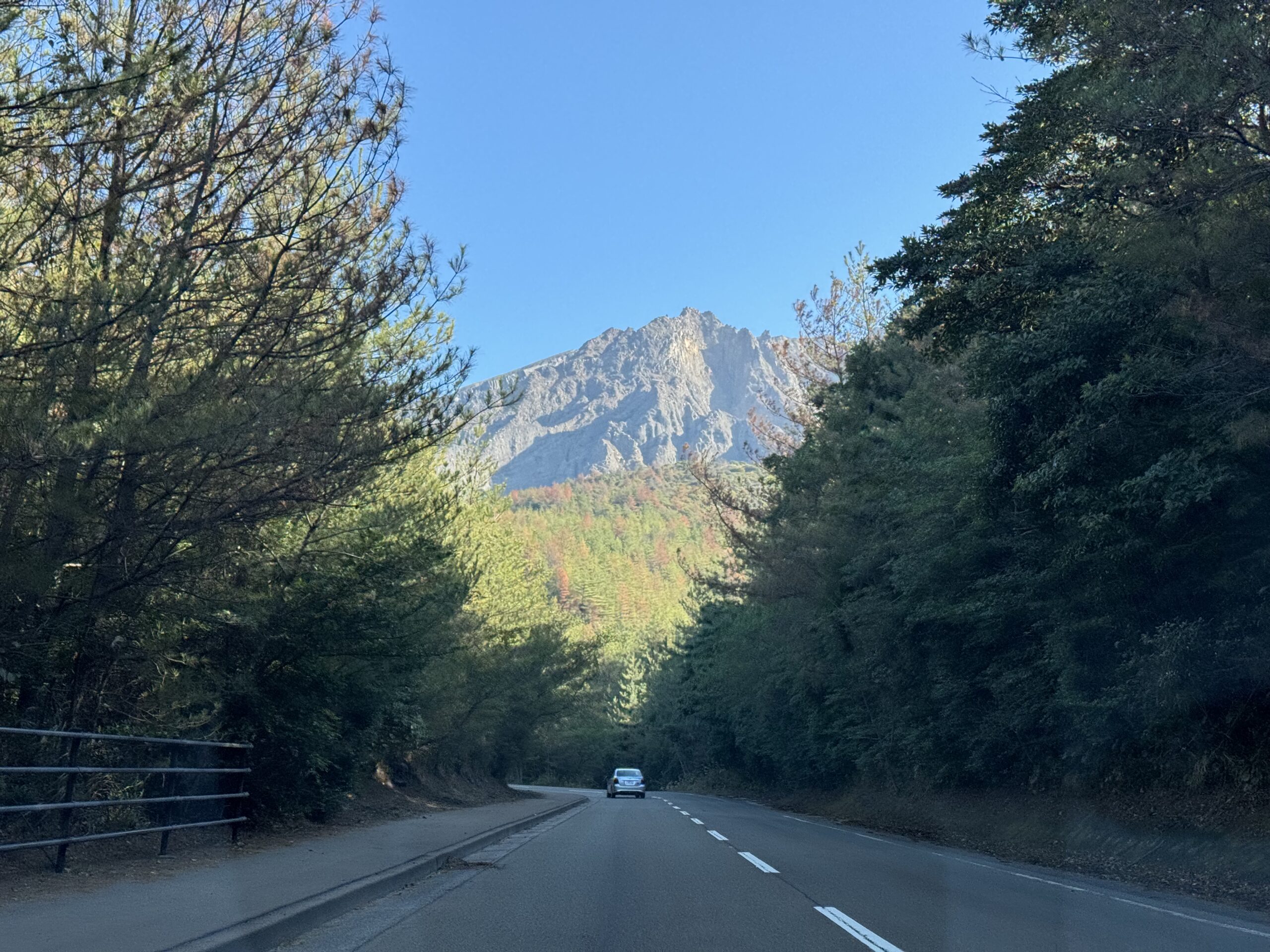 元来た道を戻らずに進行。景色がいいところで記念撮影。