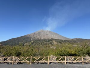 活火山だから急に噴火することもあるって事か。ヘルメットとか置いてあるし。