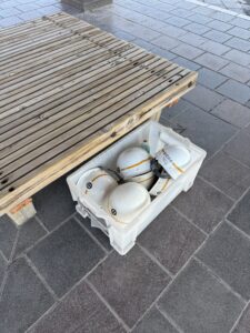 これ、最近あちこちで見かけるトレーラーコンテナのホテル。目の前に車が停められるので車で旅するなら便利だ。
