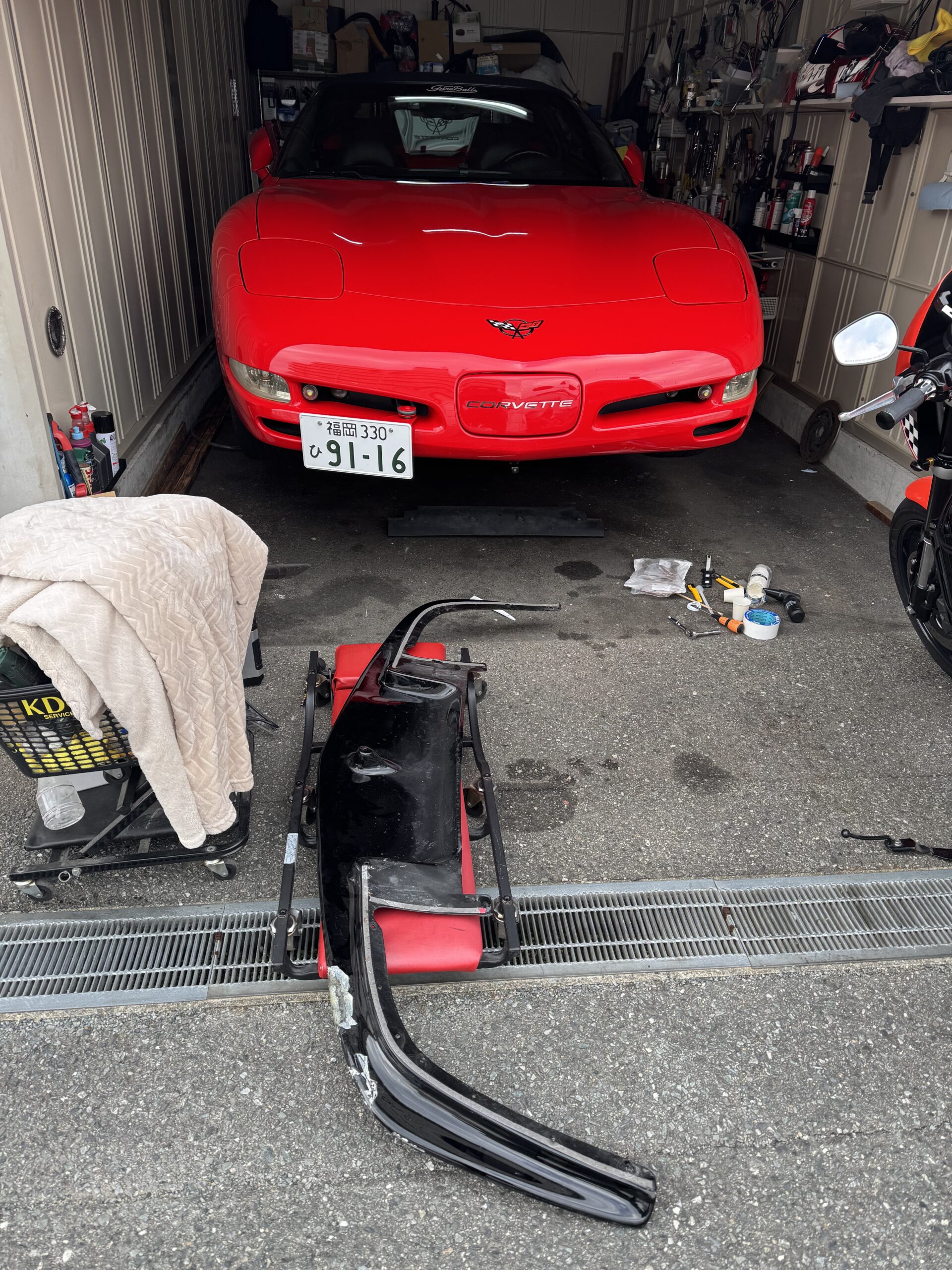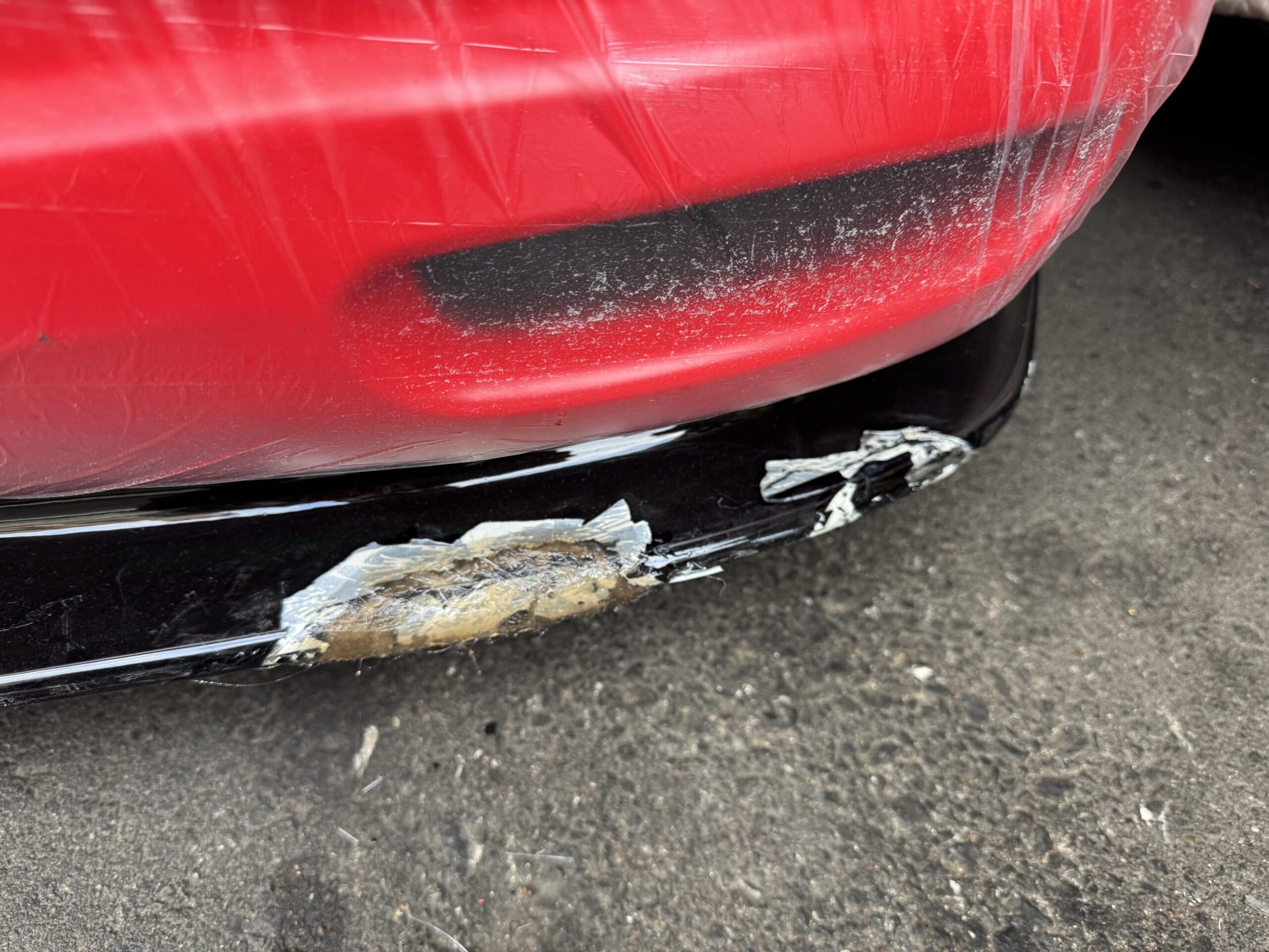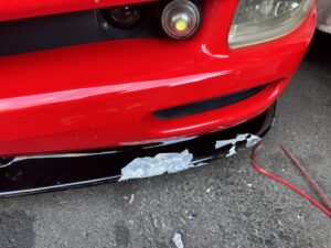 鹿屋のホテルで破損したフロントリップスポイラー