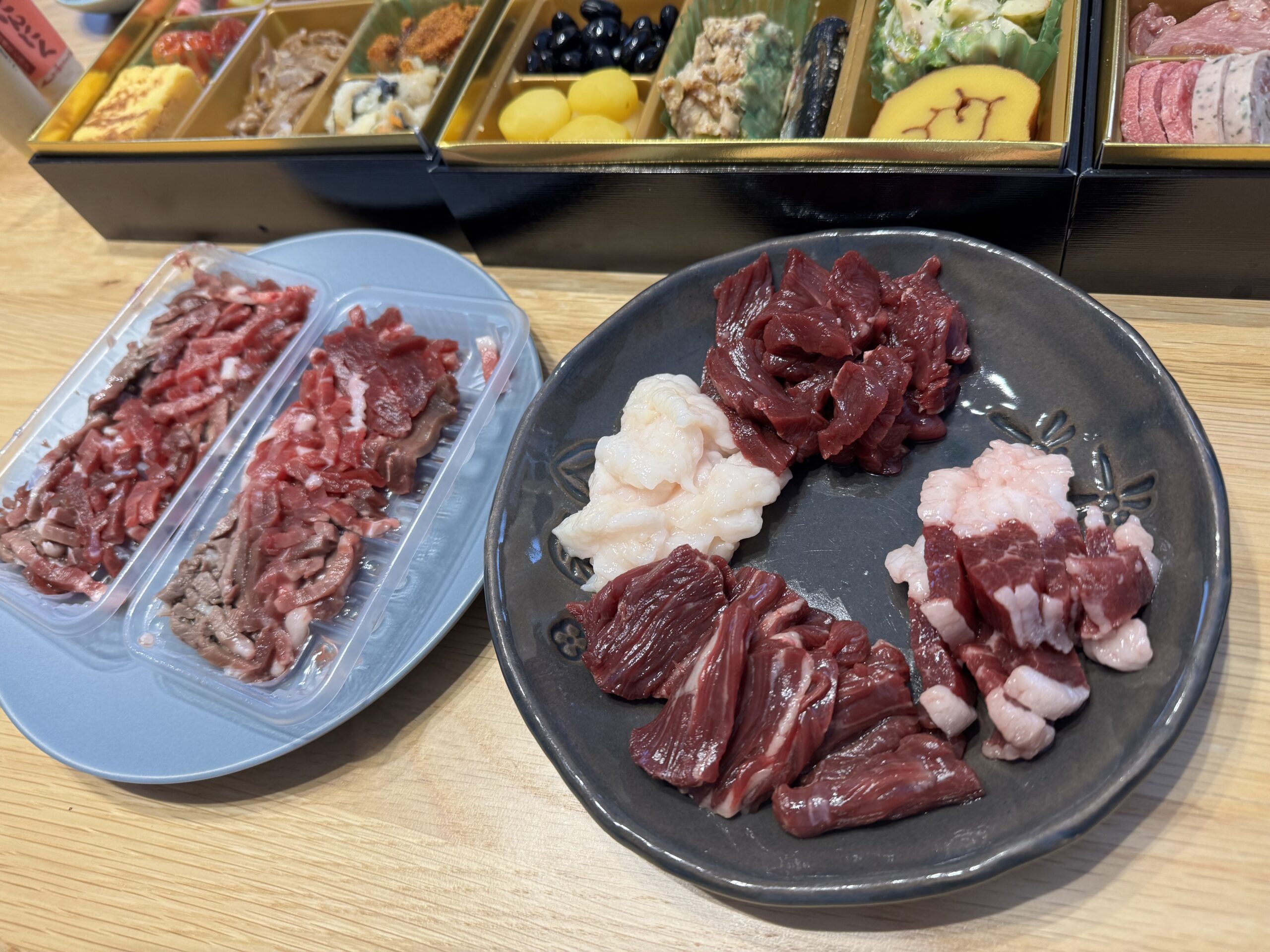 で本日は北九州の娘の家までお節と馬刺し持ってお邪魔してきた。