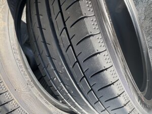 まだスリップサインまで少し残ってるけど、トヨタに車検出したら絶対交換って言われるからね。