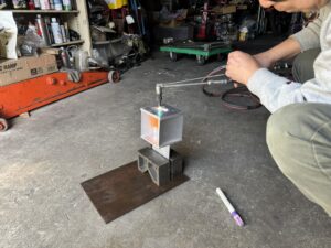 ガス切断機で穴を大きくしてもらった。この鉄板10mm位の厚さあるからね。