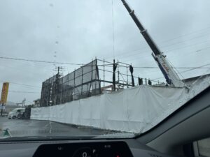 8時30分には現地に着いたけど、もう梁桁上げてる。職人はみんな朝早いんだよね。