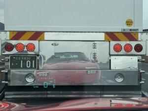 土曜日はV8でお出掛け。信号待ちでステンレス鏡面のバンパーつけてるトラック。