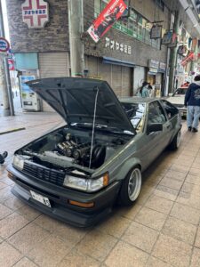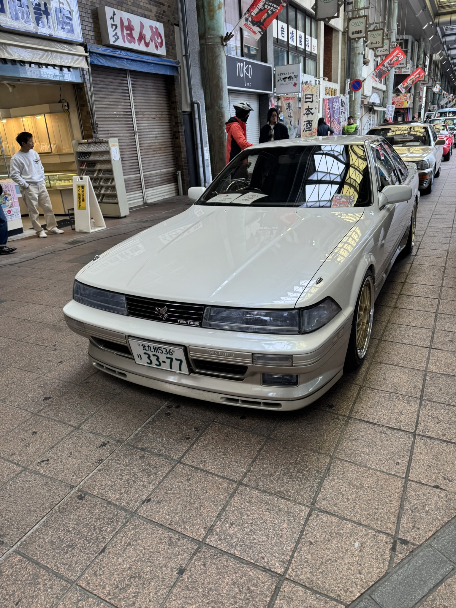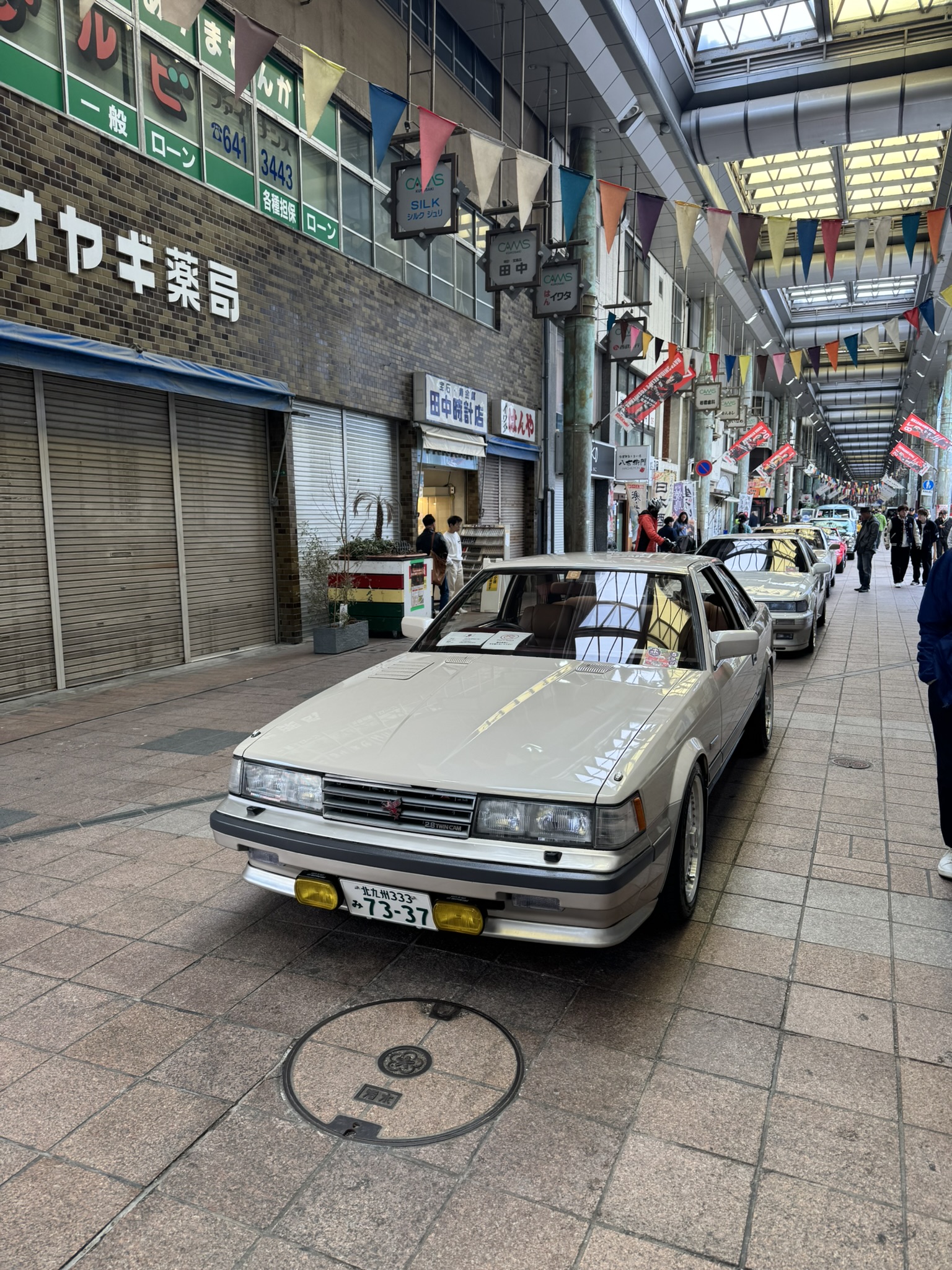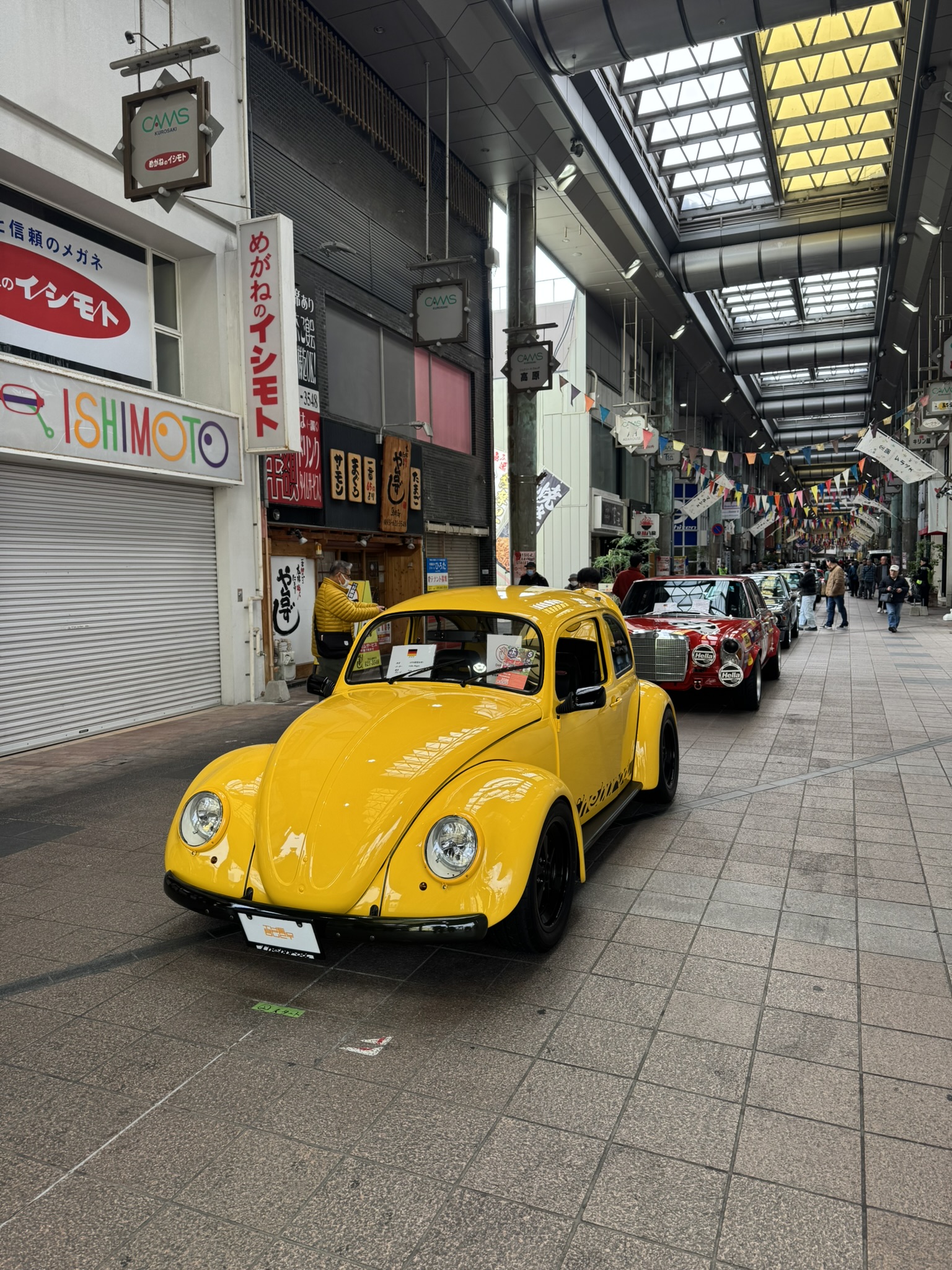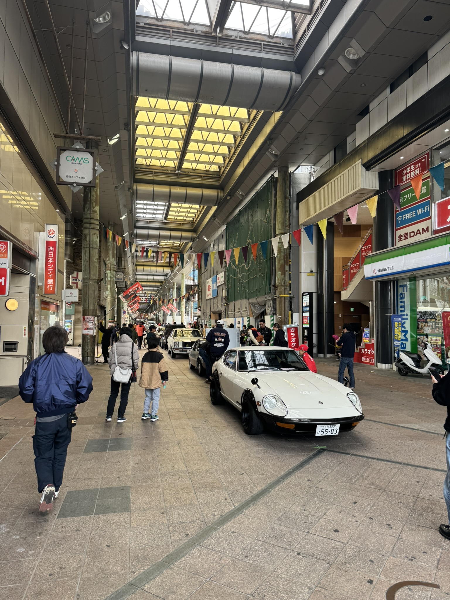 黒崎のカムズ通り商店街で旧車のイベントやってるんで見に来たんですよ。