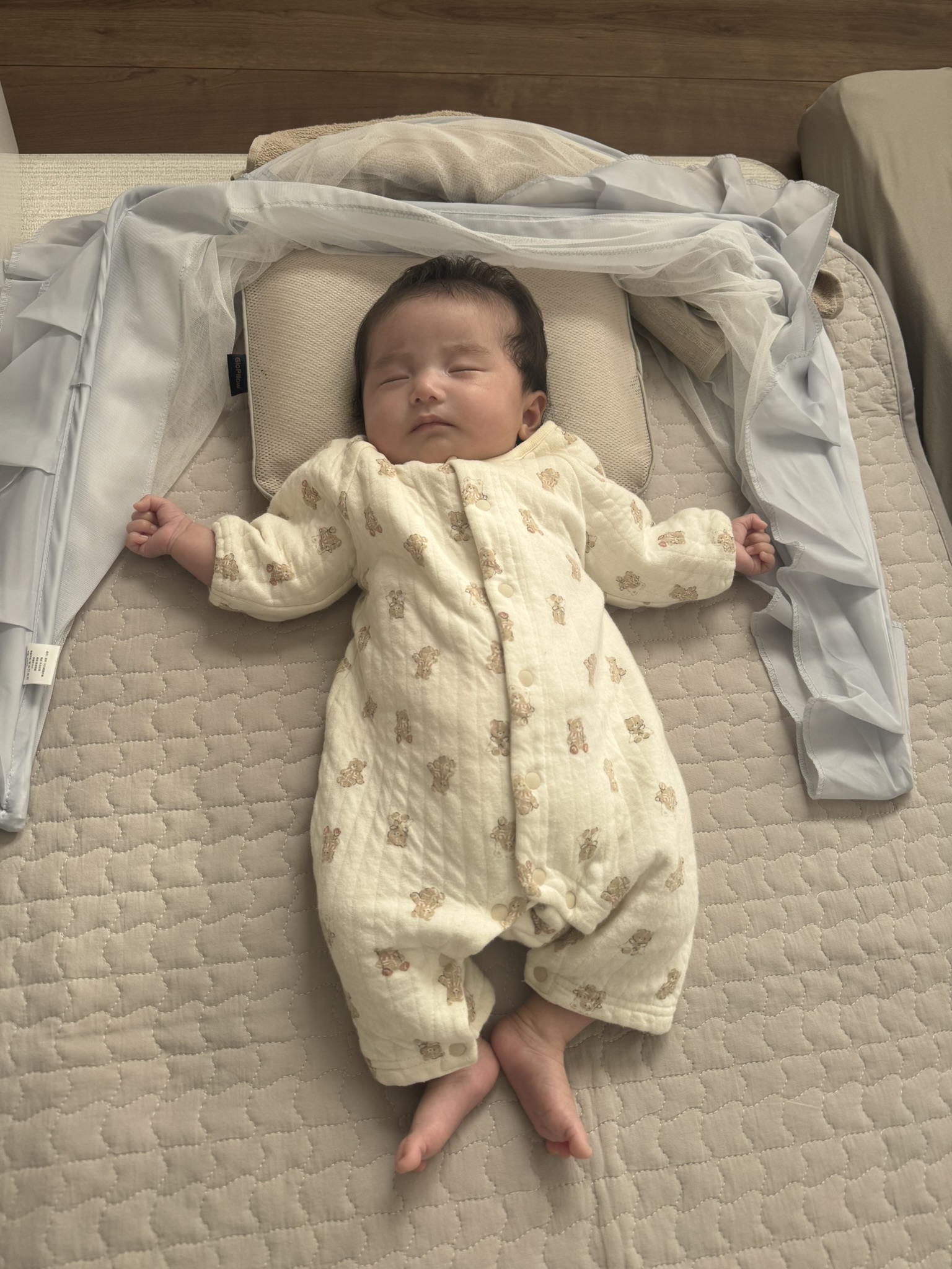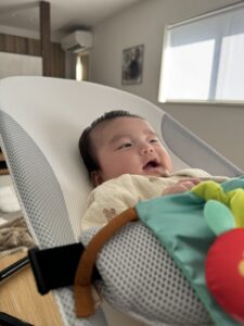 みるみる大きくなるよね。もうこの服も少し小さいかも。産まれたばかりの頃は手も足も出てなかったのに^^