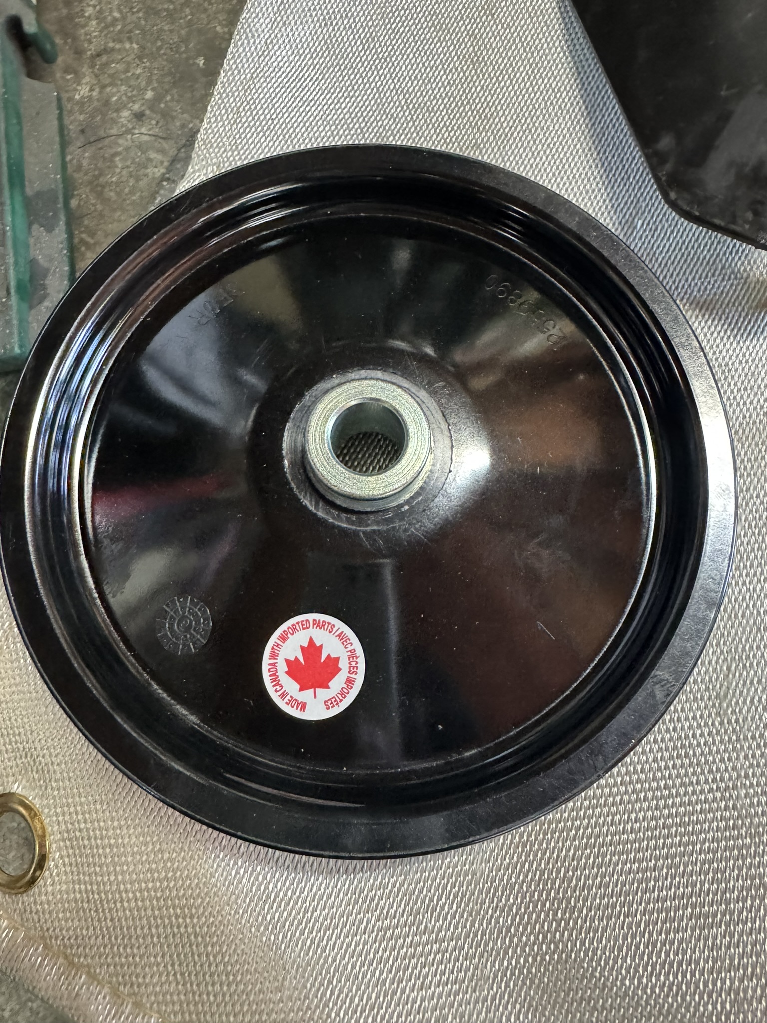 プーリーは壊して外すつもりだったから新しいの買ってる。これはGM純正です。カナダのシールが貼ってあるけどね^^