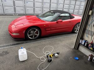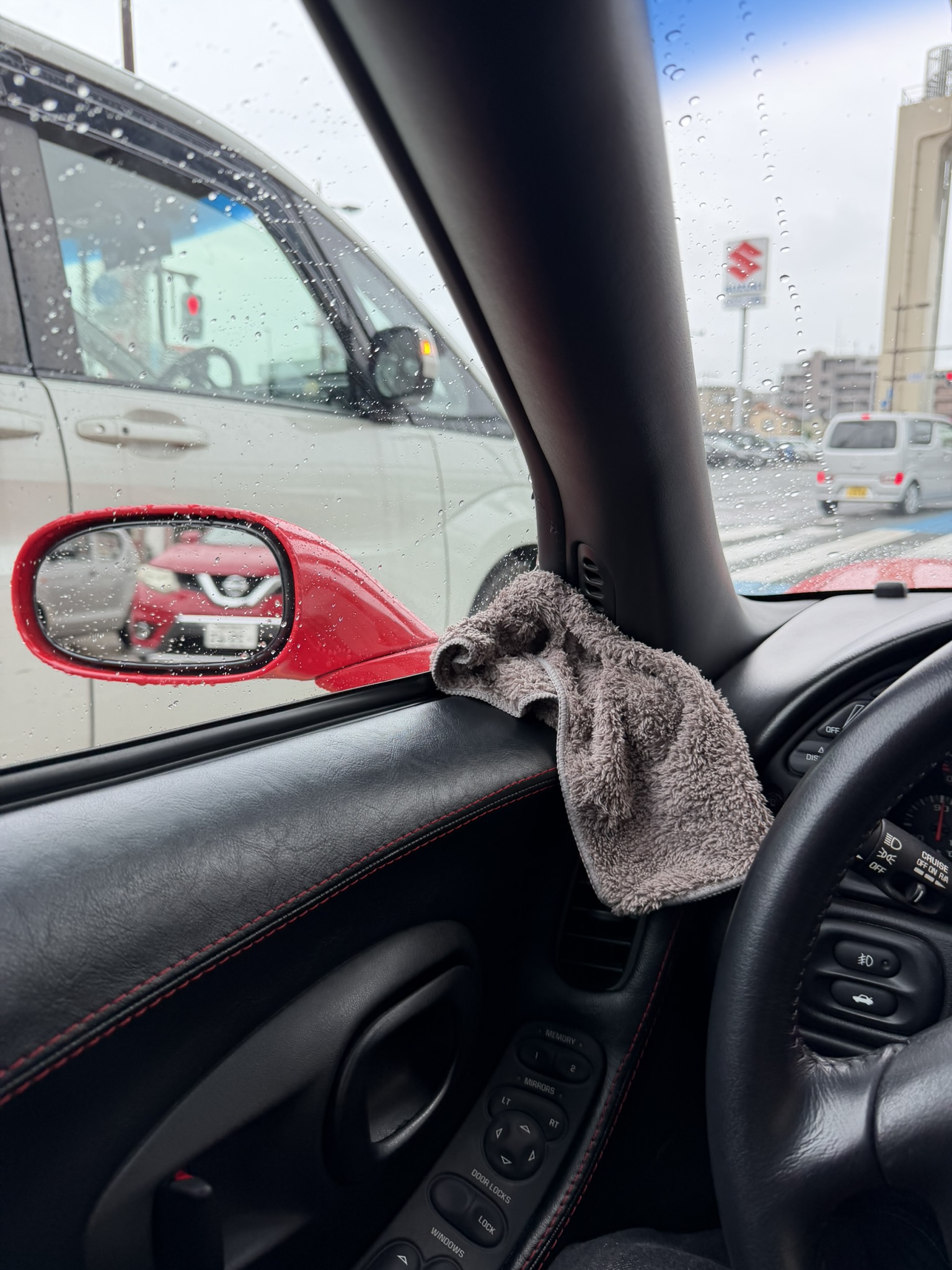 洗車いうても、汚れてはいなので埃をケルヒャーで吹き飛ばして拭きあげるだけです。