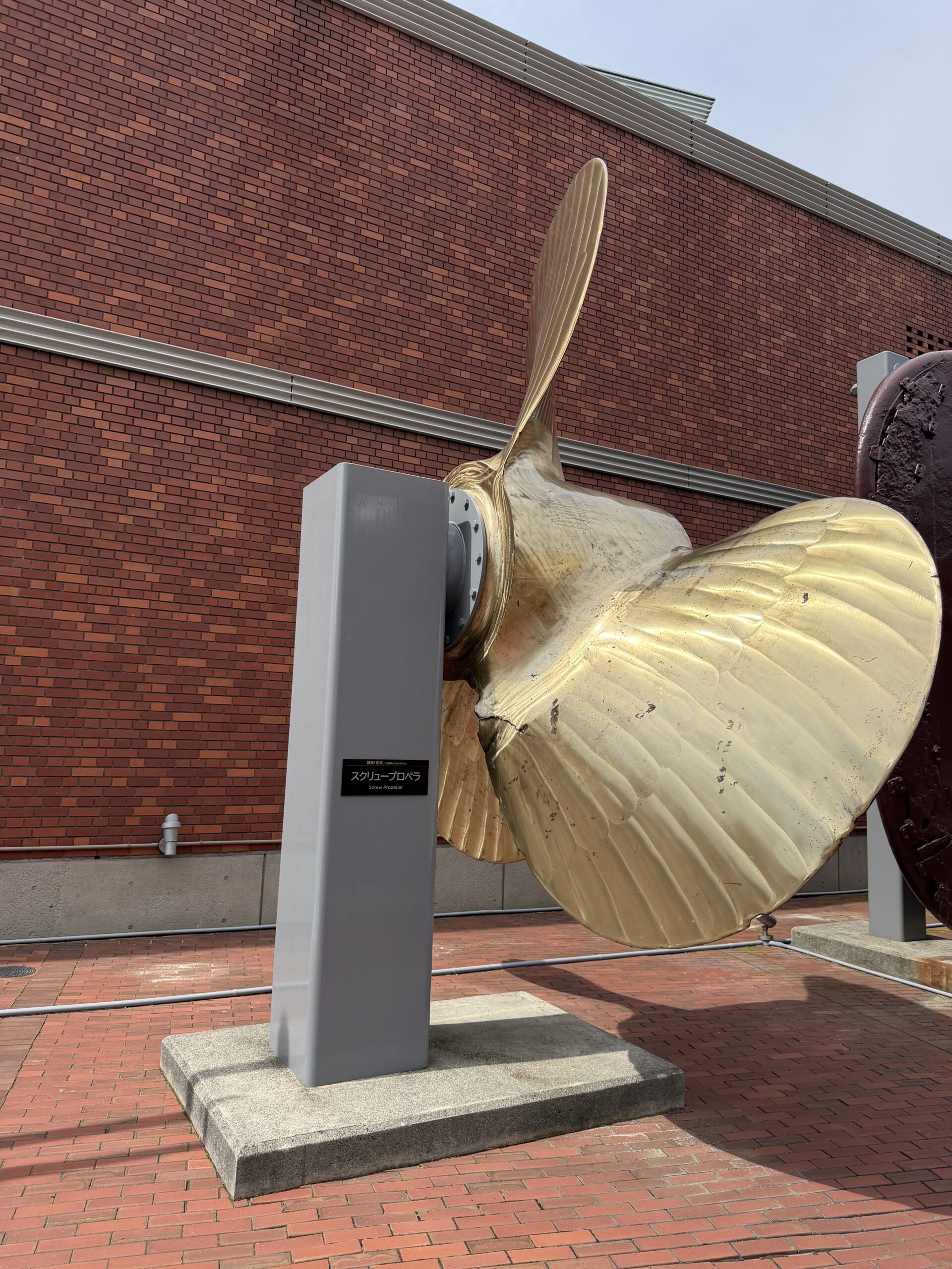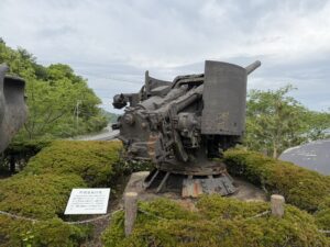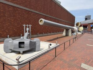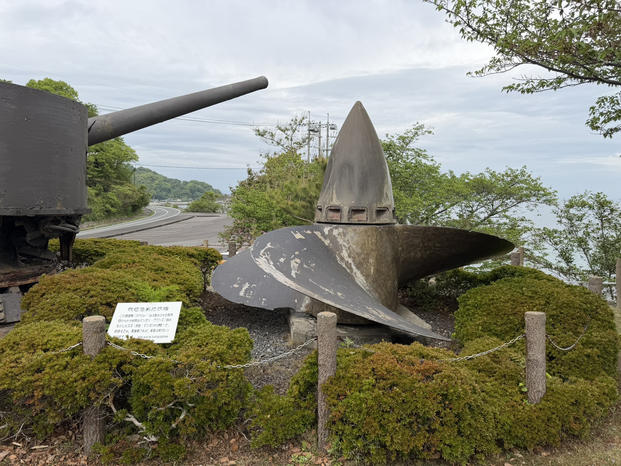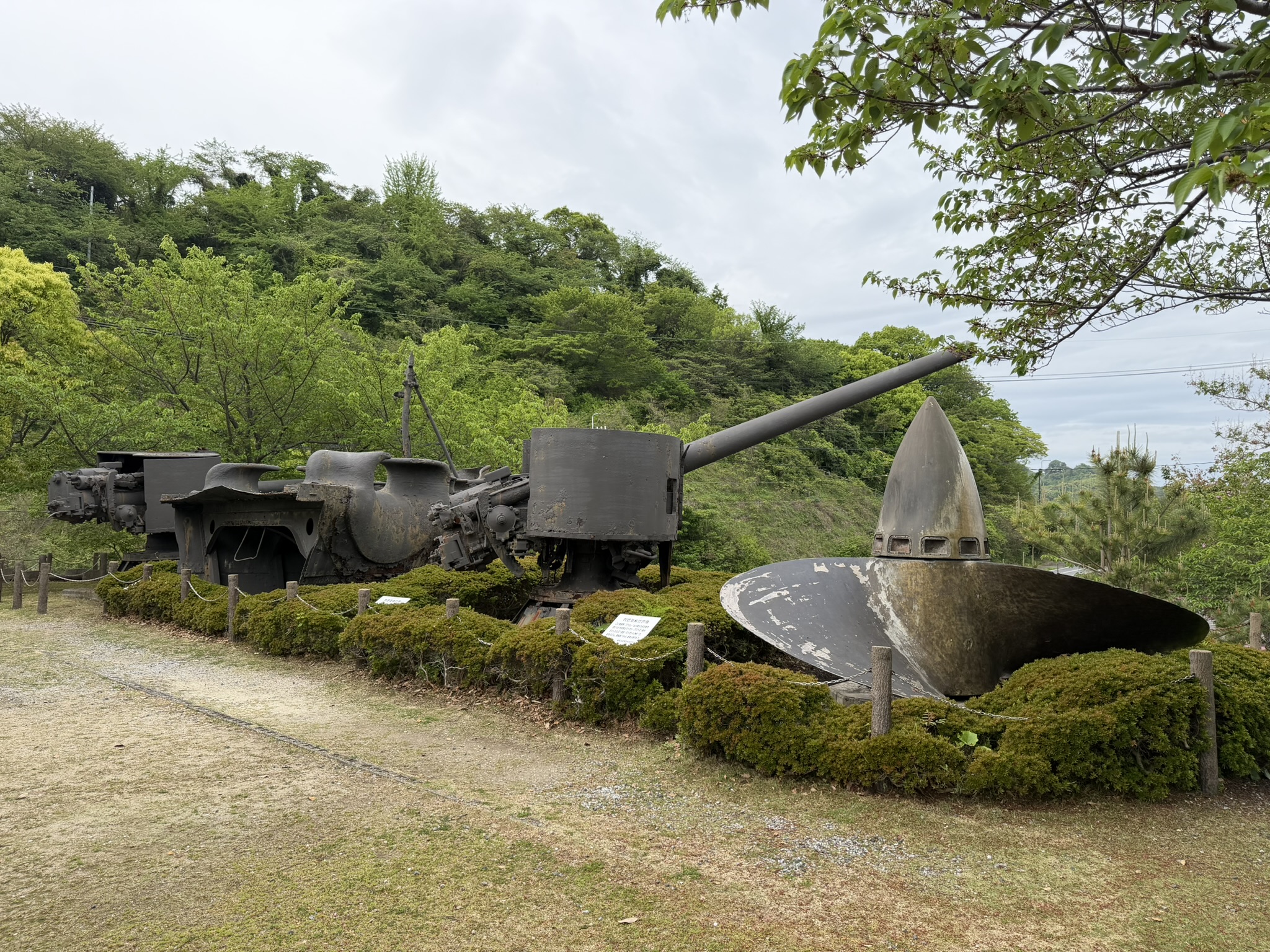 1時間ほどで大和ミュージアムは見終わって駐車場へ向かう。途中展示してある陸奥の主砲とスクリュー。デカい。