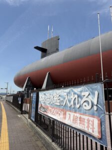 以前ここに訪れた時にこの展望台で家族で記念撮影したな。実物の潜水艦あきしおがドーンと展示してある。