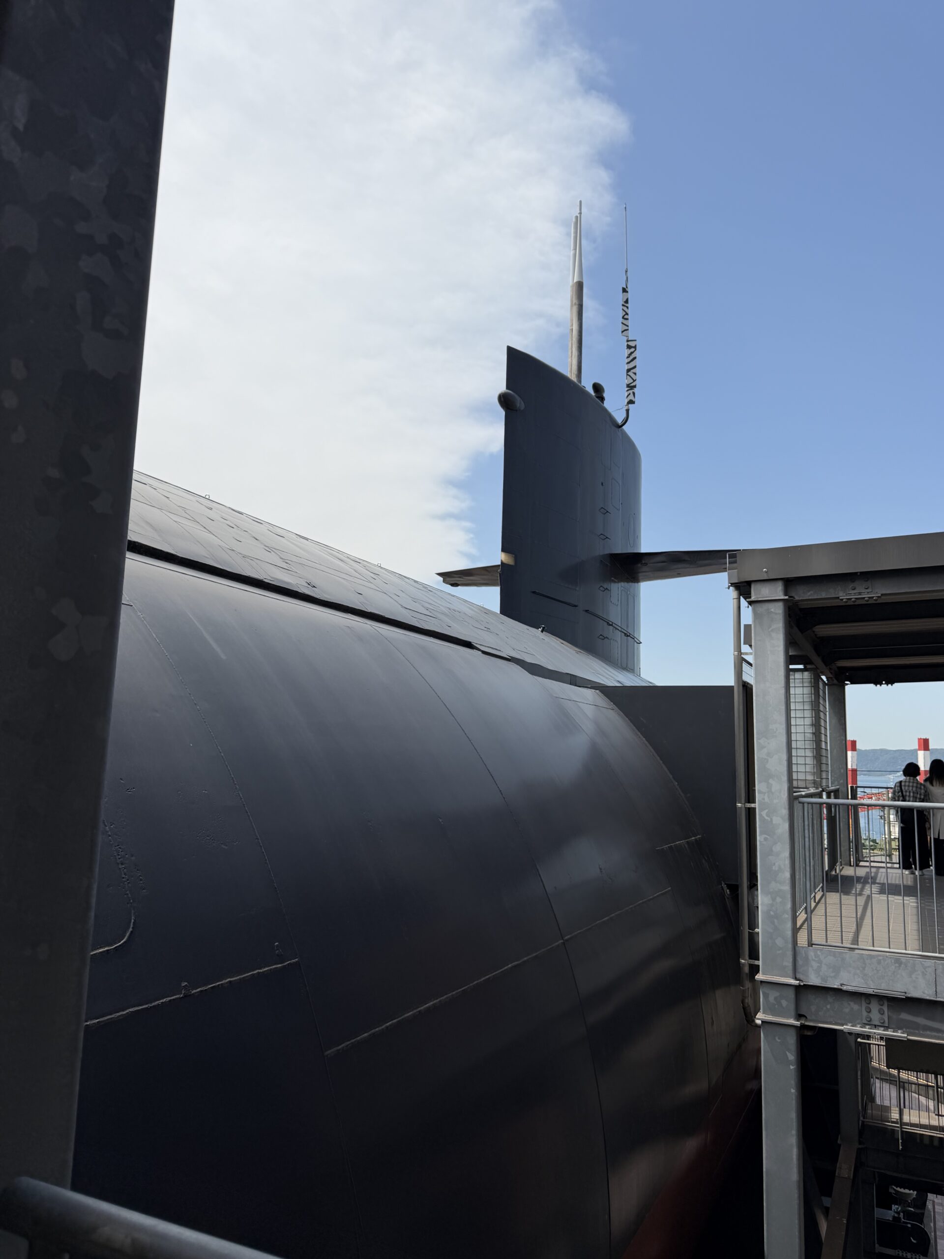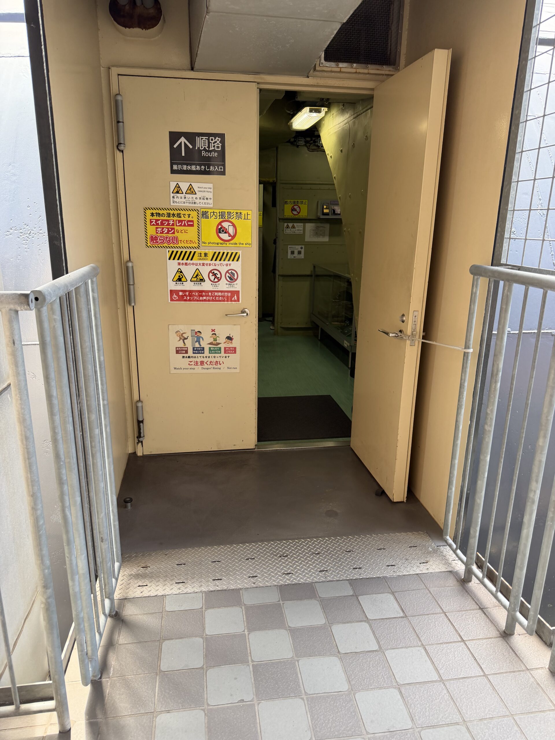 そして潜水艦の中へ。中は撮影禁止。狭いので頭打ちそう。少しかがんで見学した。