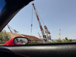 古賀ICで降りて現場の様子を見てきた。仮囲いが取れてます。