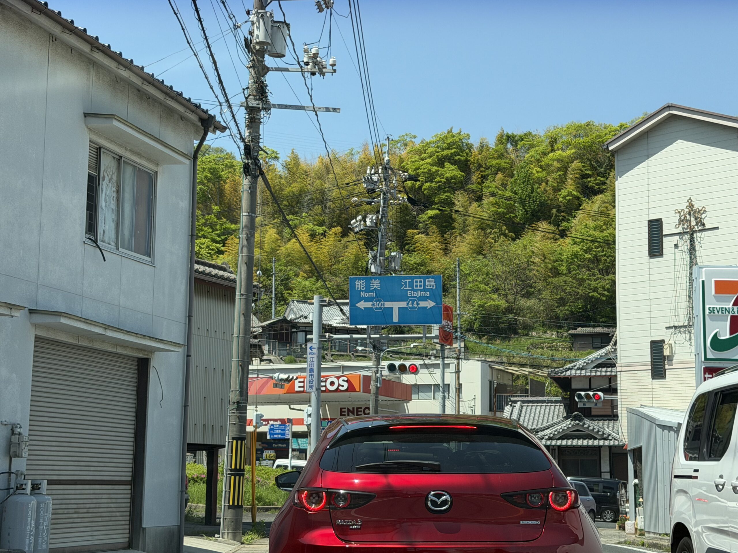 さて、ここから宿泊先の岩国に戻るにはどれくらいのかかるのか、ナビに入れてみたら結構かかるな。