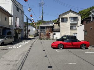 でもこんな細い道をGoogleナビは案内するんだよ。アメ車で入って行くのは危険だ。前にもずっとバックして戻ってきた嫌な記憶があるし。