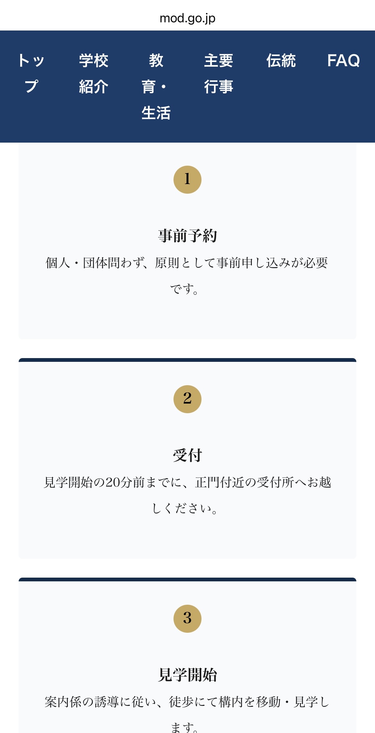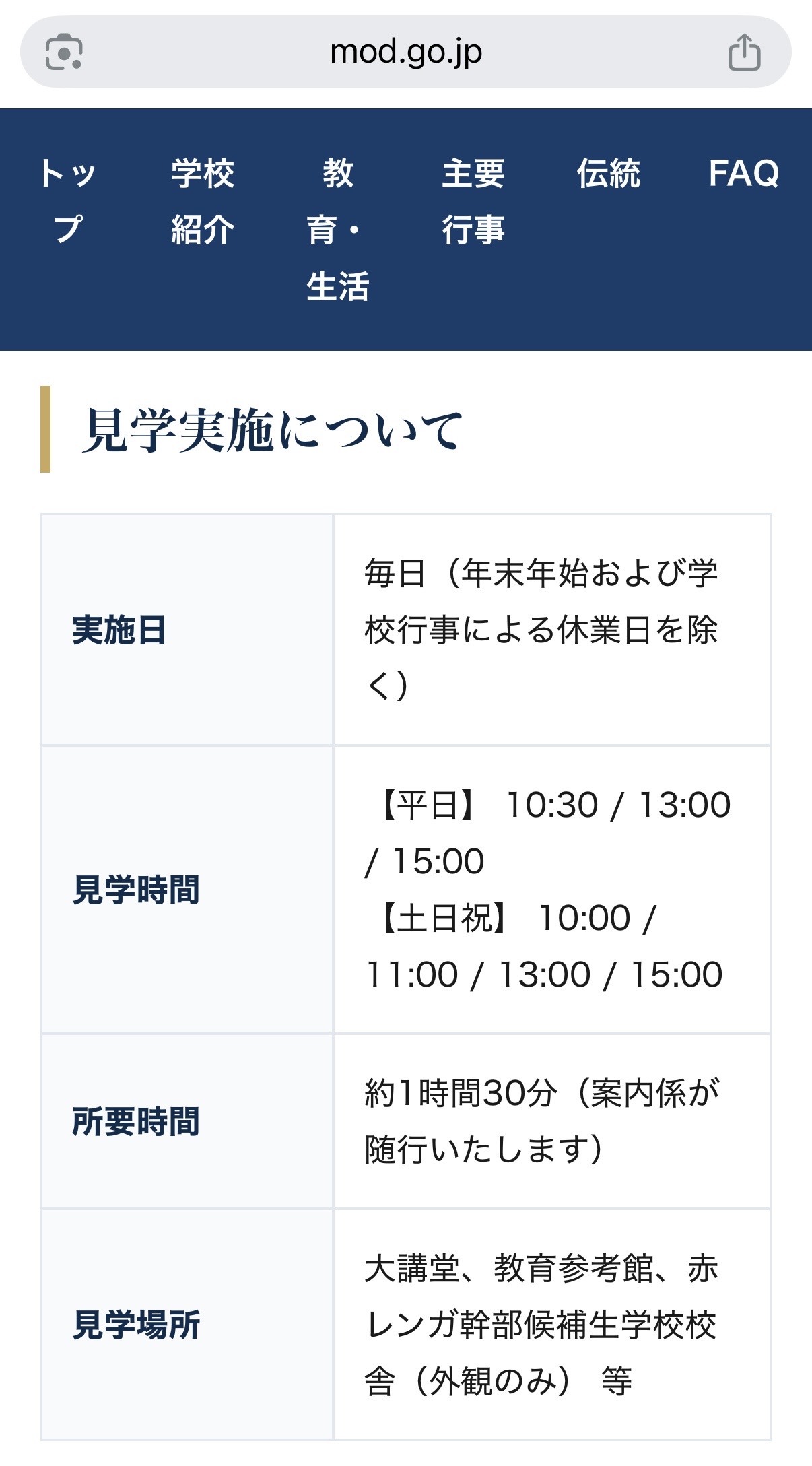 第1術科学校学生館(旧海軍兵学校西生徒館) を目指してきてみたけど、見学という看板は出てるけど、入口には門兵が居る。