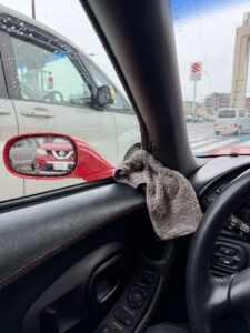 高速道路ではそんなに無かったんだけど、下道に降りたら雨が漏れてきた。