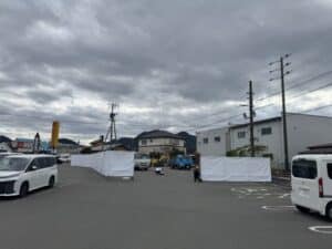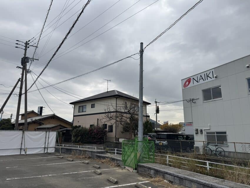 現地確認。電線が建物に当たるみたいなので九電とNTTに連絡。