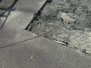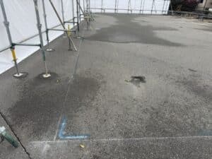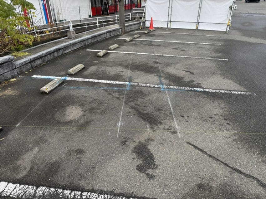 アスファルトを剥がすのでカッターの位置を墨だしました。