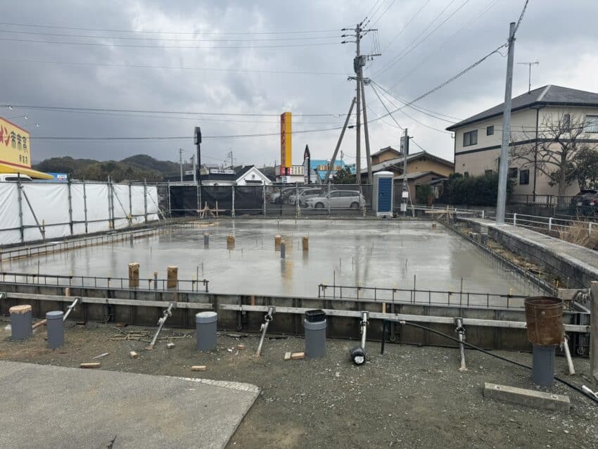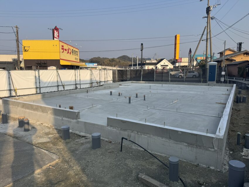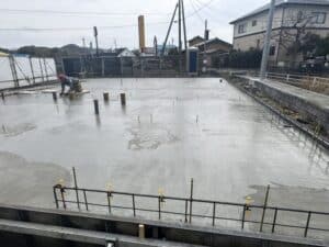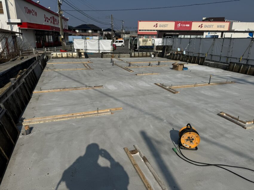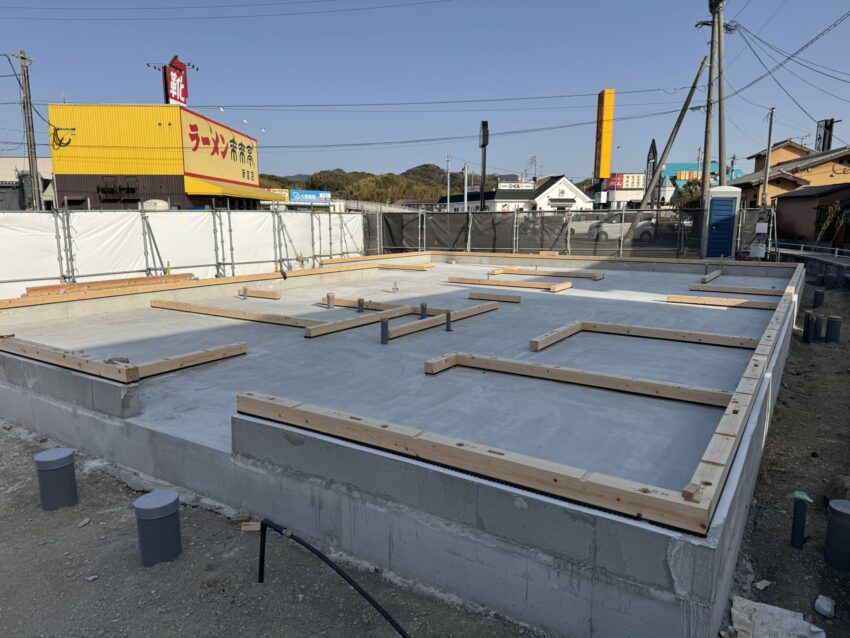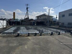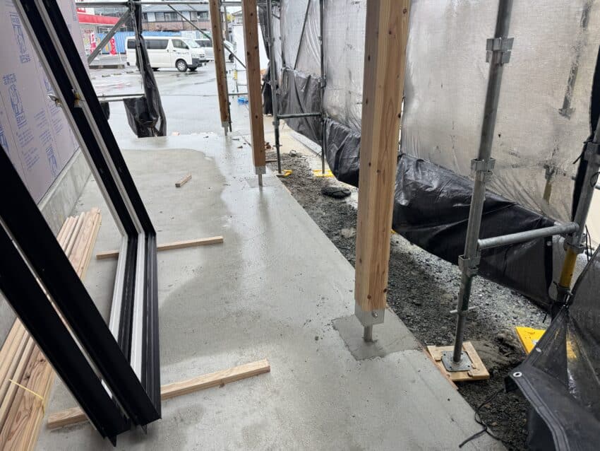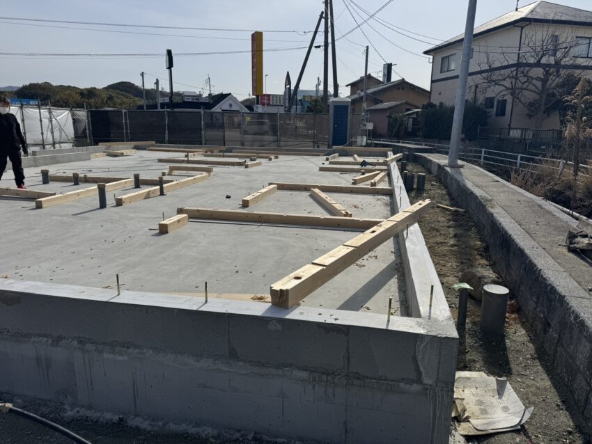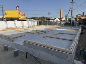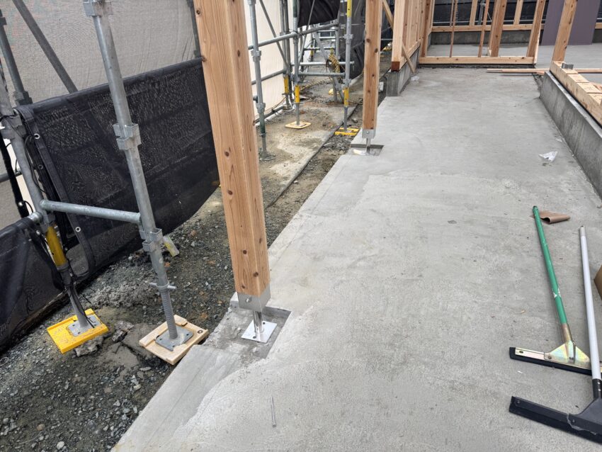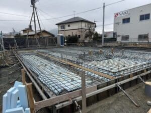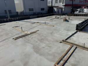 基礎の立ち上がりが外周部だけなので、アンカーボルトのセットに時間が掛かりそうですね。