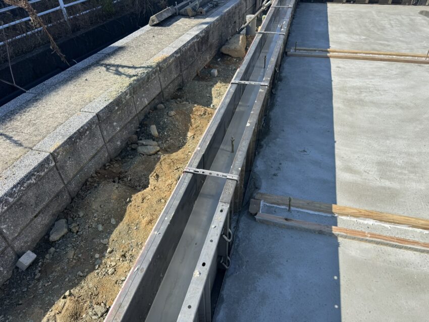 今日は土台の位置にレベラー流せるように型枠組んでます。