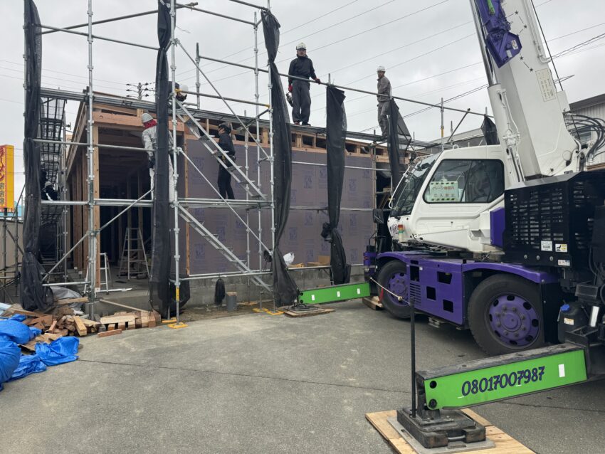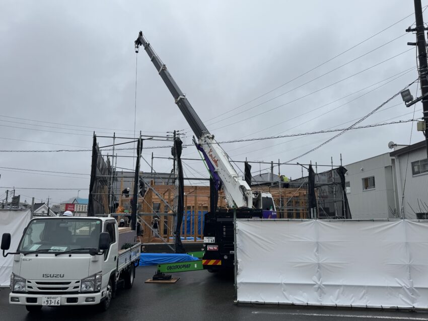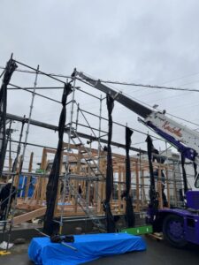 今日は棟上げです。天候が微妙ですが予報では回復傾向なので決行しました。