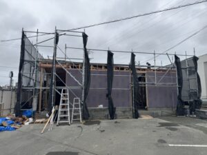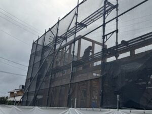 風の力ってすごいですね。防炎シートが破れてます。