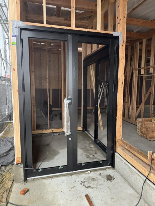 フロントサッシを取り付けました。ガラスは後日入ります。