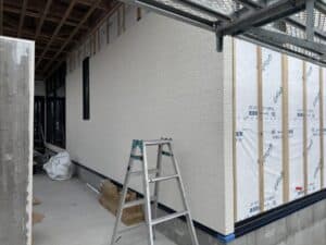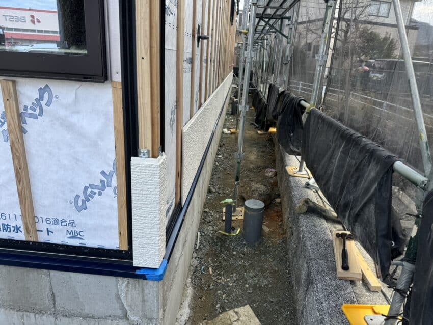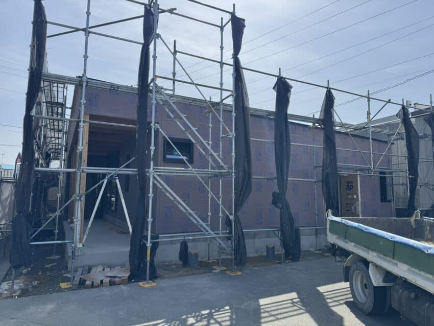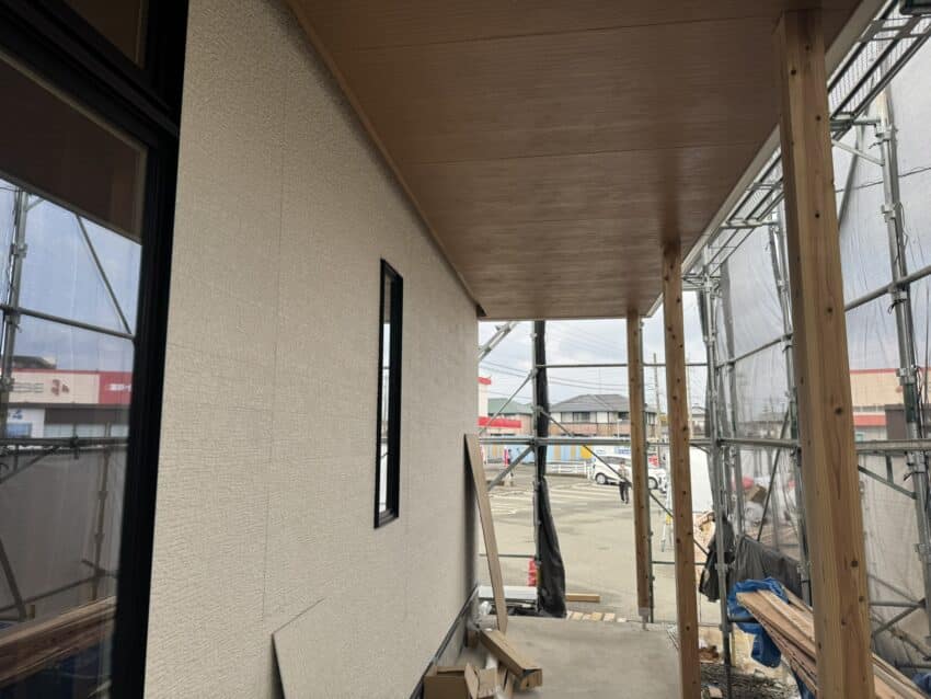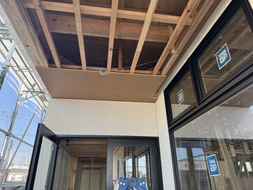 外部は軒天を施工中。