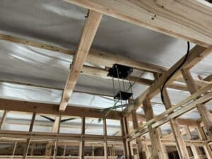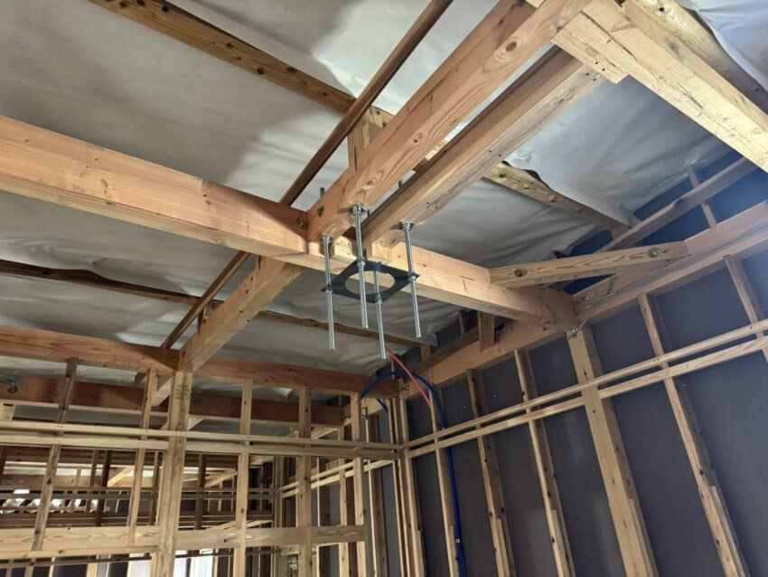 室内はペットクリニックならではの下地を作ってます。作業灯の吊り架台です。